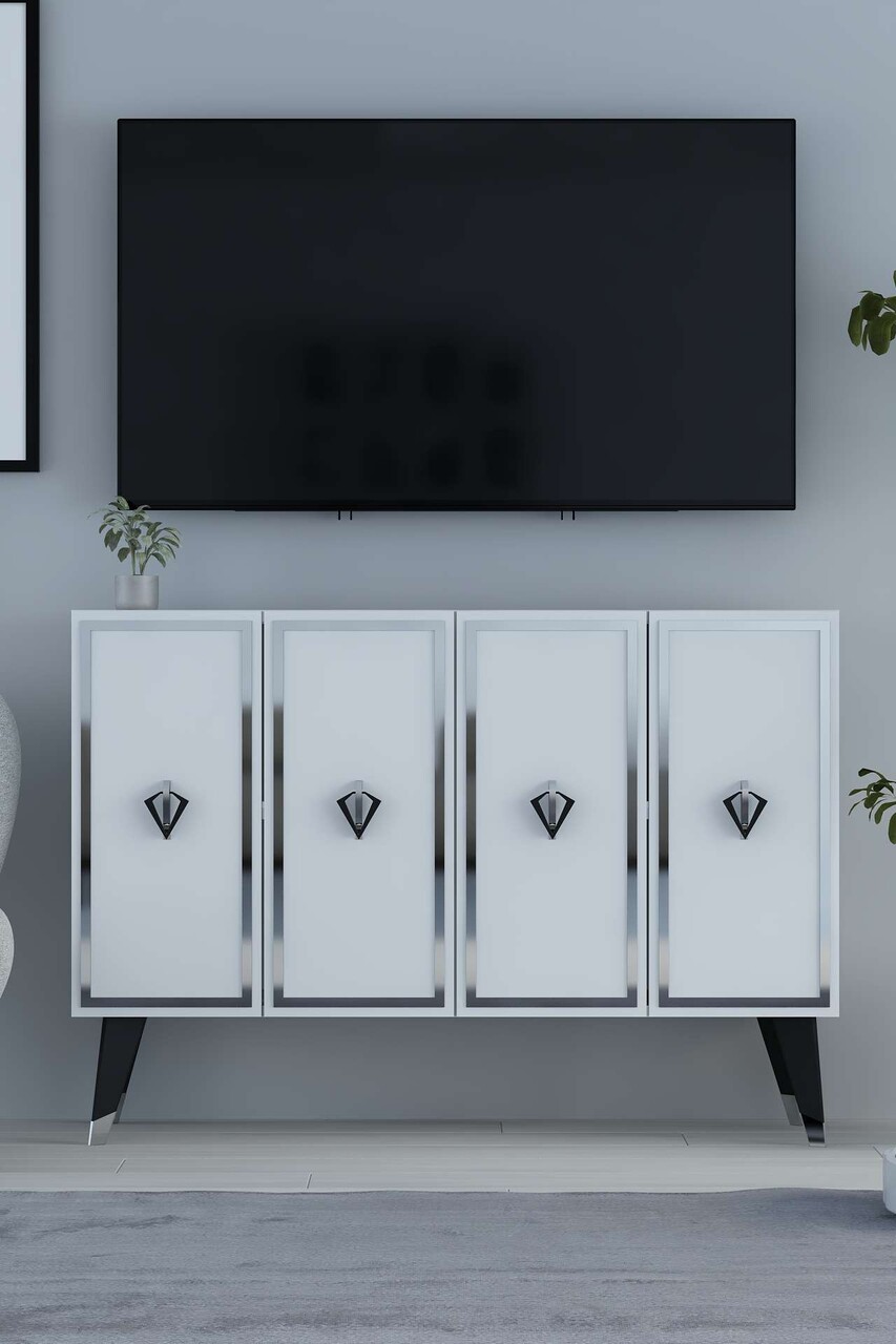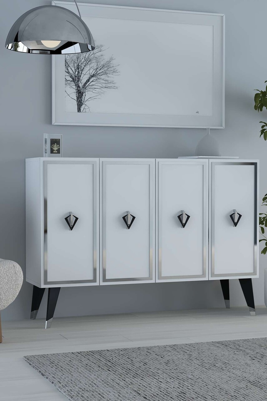 Consola, Hanah Home, 8176KM-32, 120x80x29.6 cm, PAL , White / Black / Silver