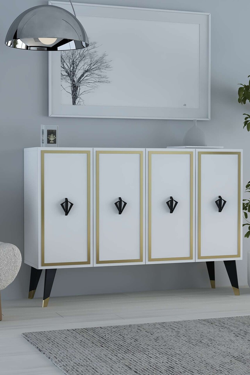 Consola, Hanah Home, 8178KM-32, 120x80x29.6 cm, PAL , Alb / Negru / Auriu