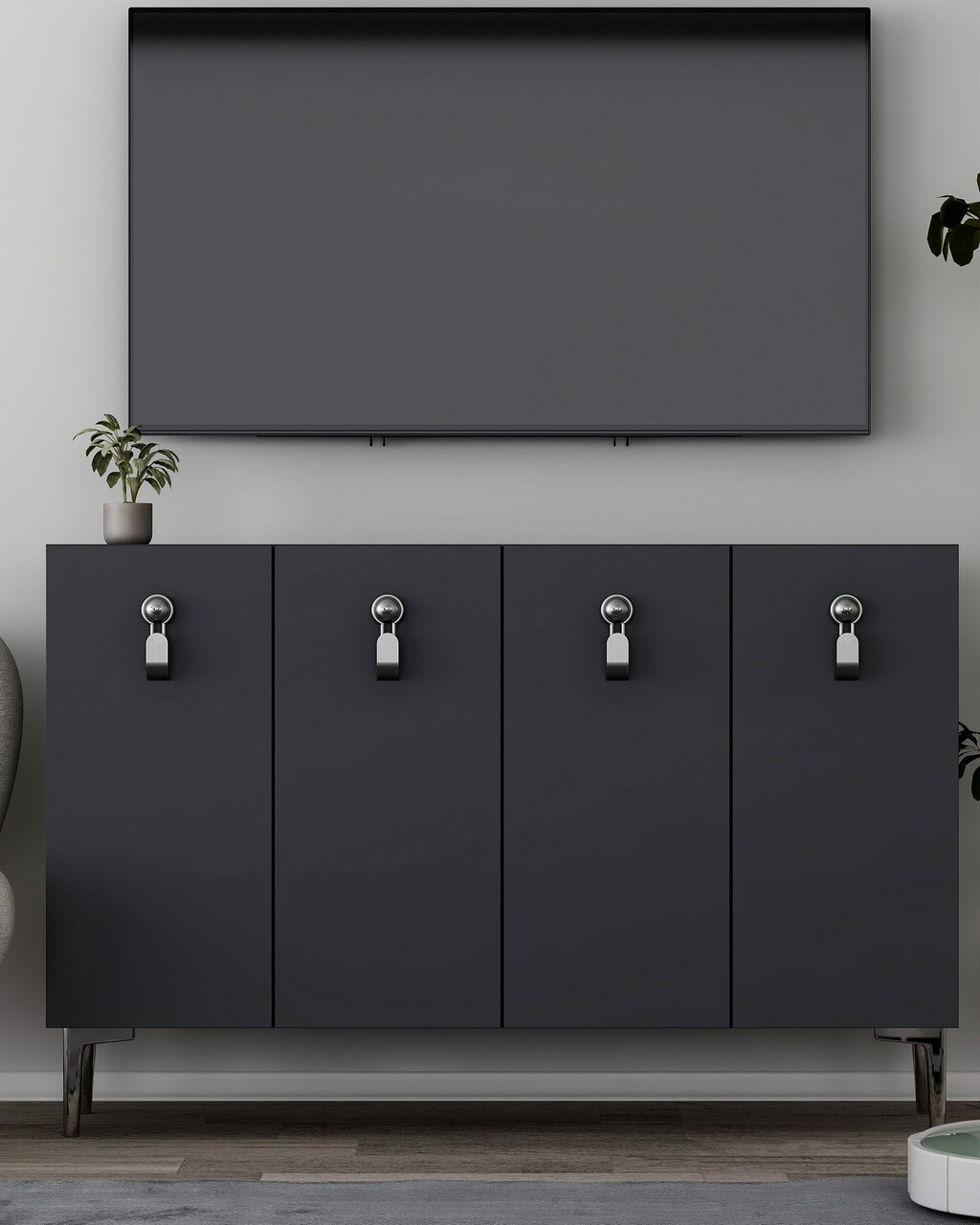 Consola, Hanah Home, 8181KM-64, 120x75x29.6 cm, PAL , Antracit / Argintiu