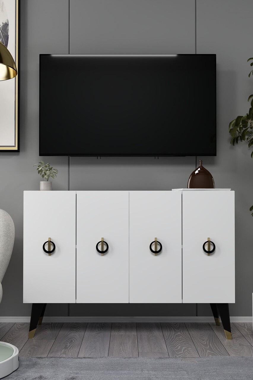 Consola, Hanah Home, 8183KM-32, 120x80x29.6 cm, PAL , Alb / Negru / Auriu