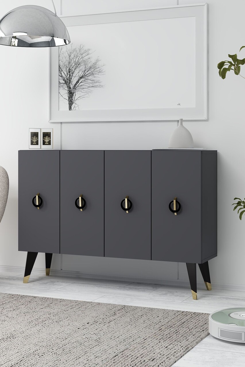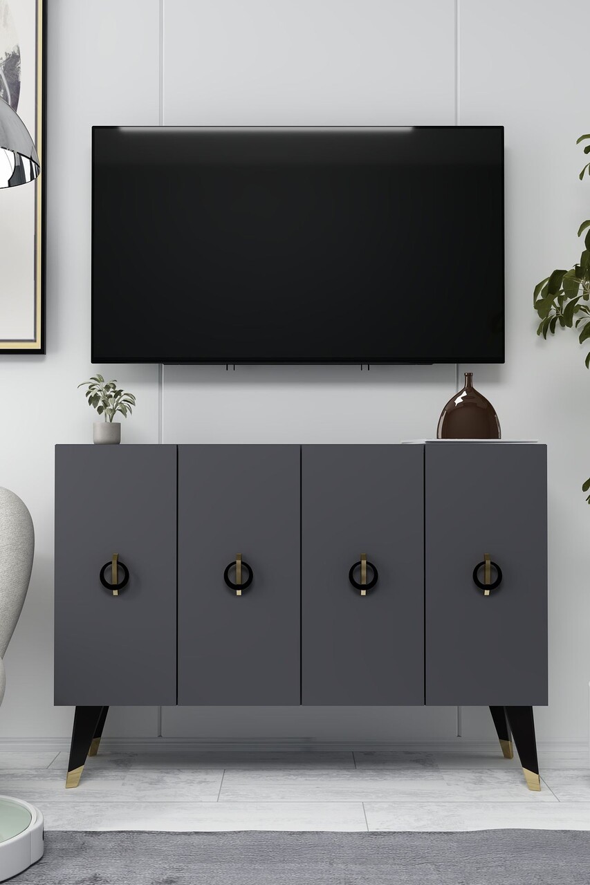 Consola, Hanah Home, 8183KM-32, 120x80x29.6 cm, PAL , Antracit / Negru / Auriu