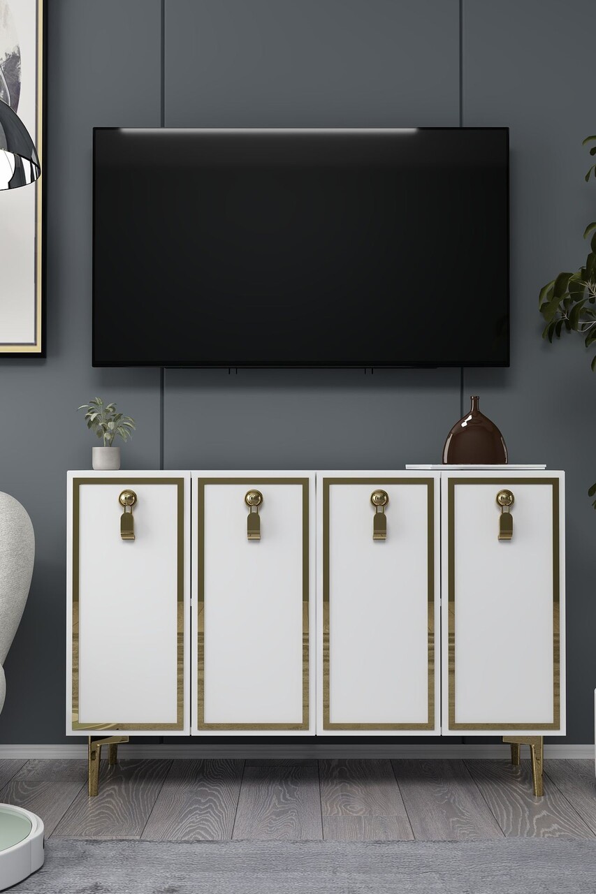 Consola, Hanah Home, 8186KM-64, 120x75x29.6 cm, PAL , Alb/Auriu