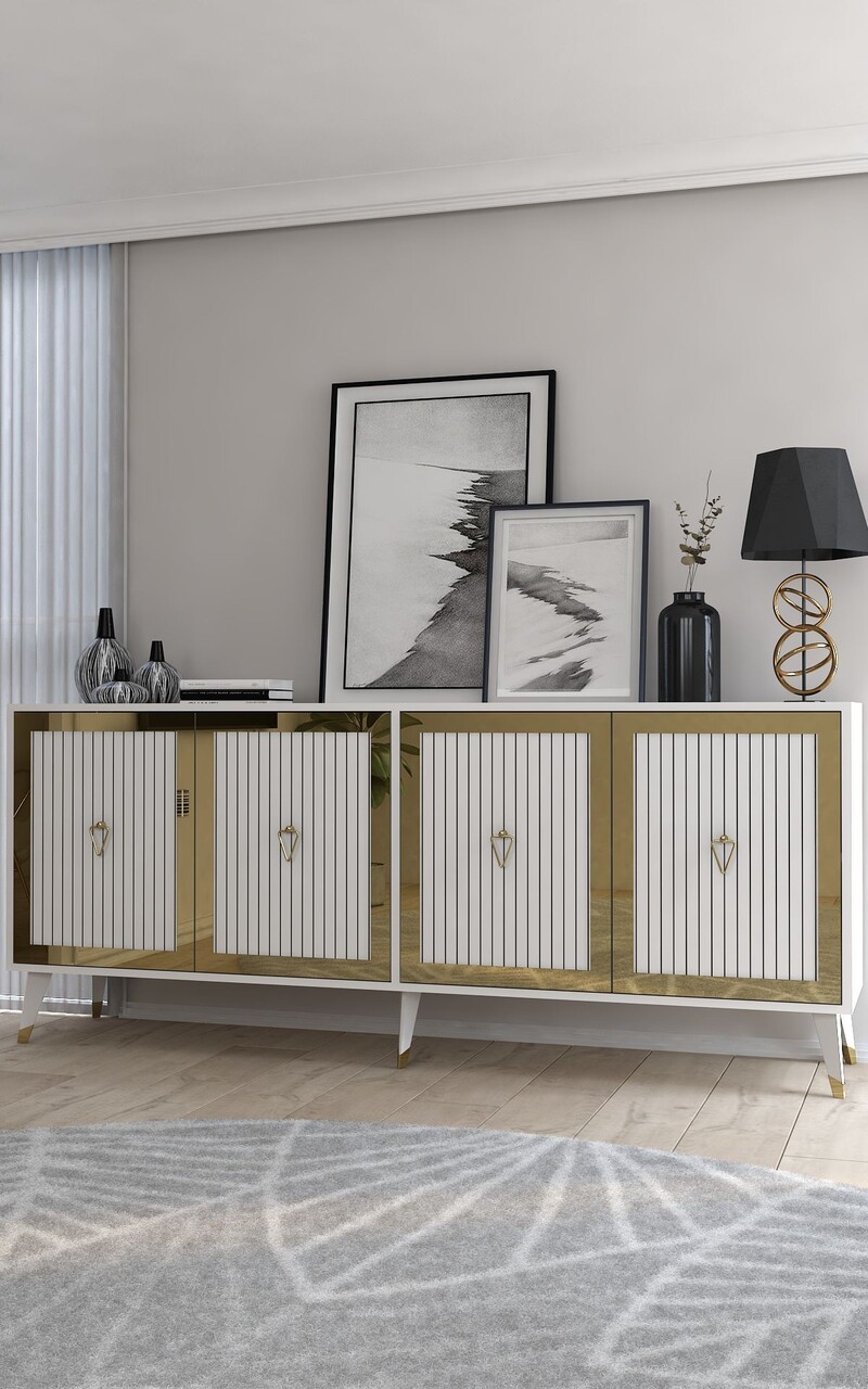Consola, Hanah Home, Benner, 180x78.6x35 cm, PAL , Alb/Auriu