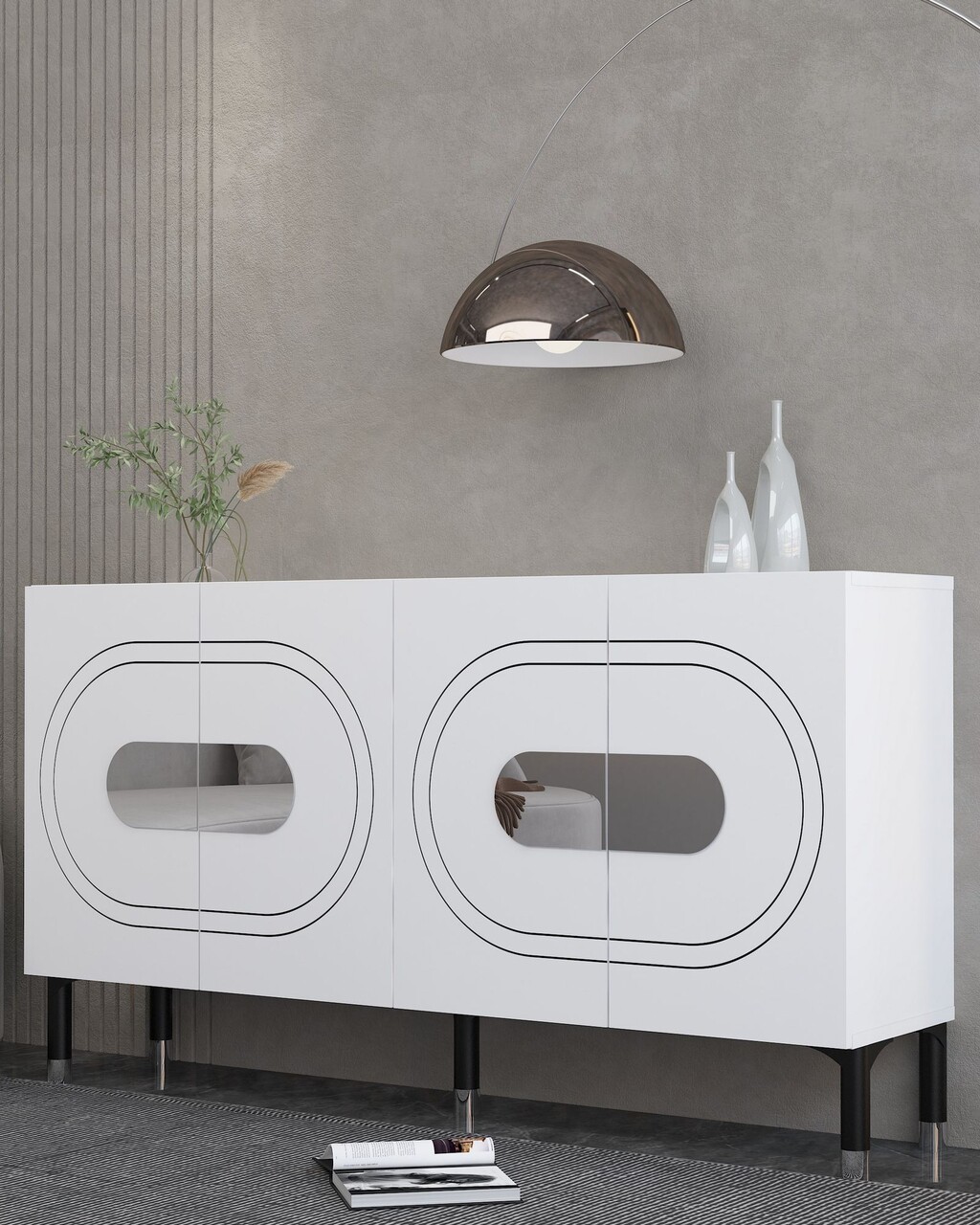 Consola, Hanah Home, Demet, 150x75x35 cm, PAL , Alb / Argintiu