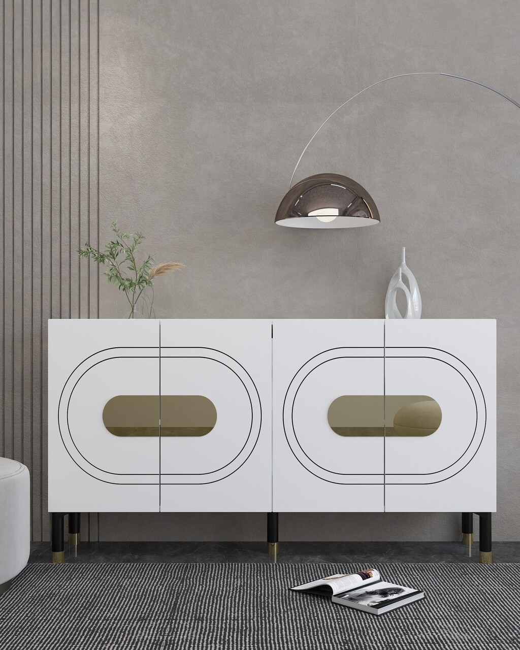 Consola, Hanah Home, Demet, 150x75x35 cm, PAL , Alb/Auriu