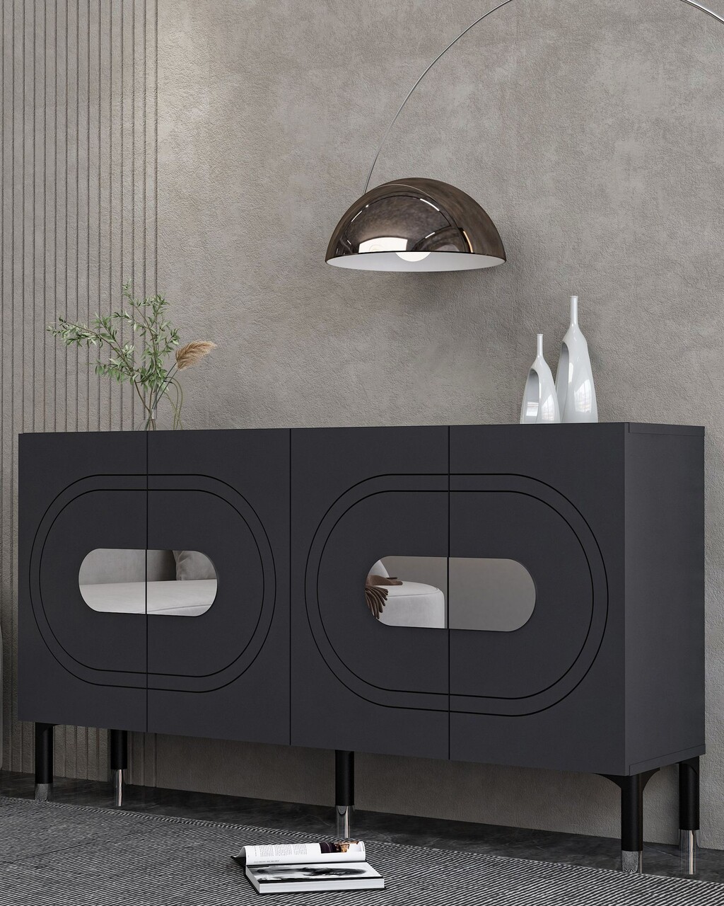 Consola, Hanah Home, Demet, 150x75x35 cm, PAL , Antracit / Argintiu