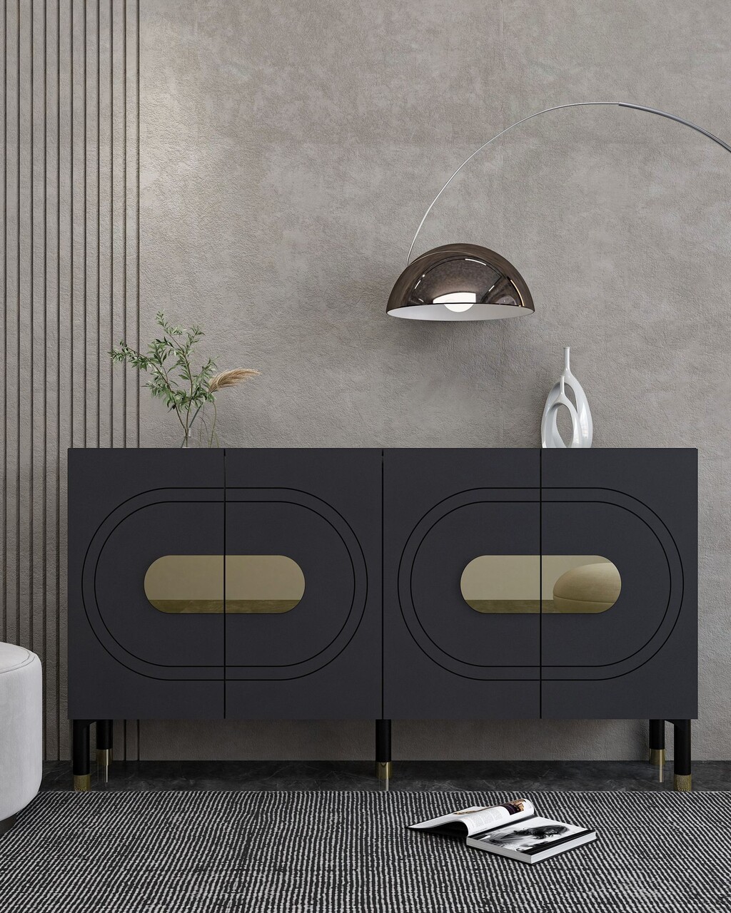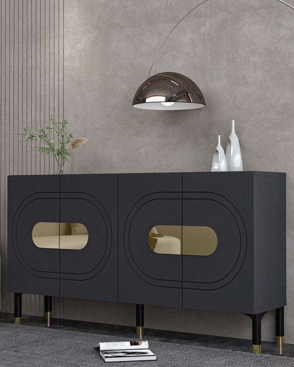 Consola, Hanah Home, Demet, 150x75x35 cm, PAL , Antracit / Aur