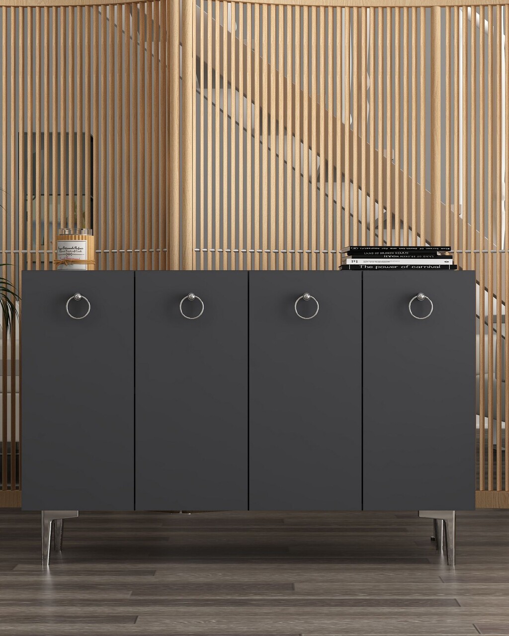 Consola, Hanah Home, Efes, 120x80x29.6 cm, PAL , Antracit / Argintiu