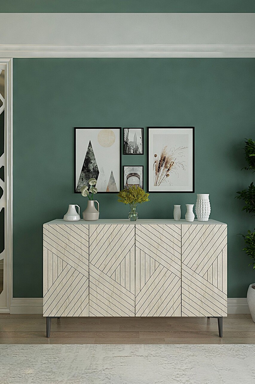 Consola, Hanah Home, Ferro 120, 120x75x32 cm, Alb / Travertin