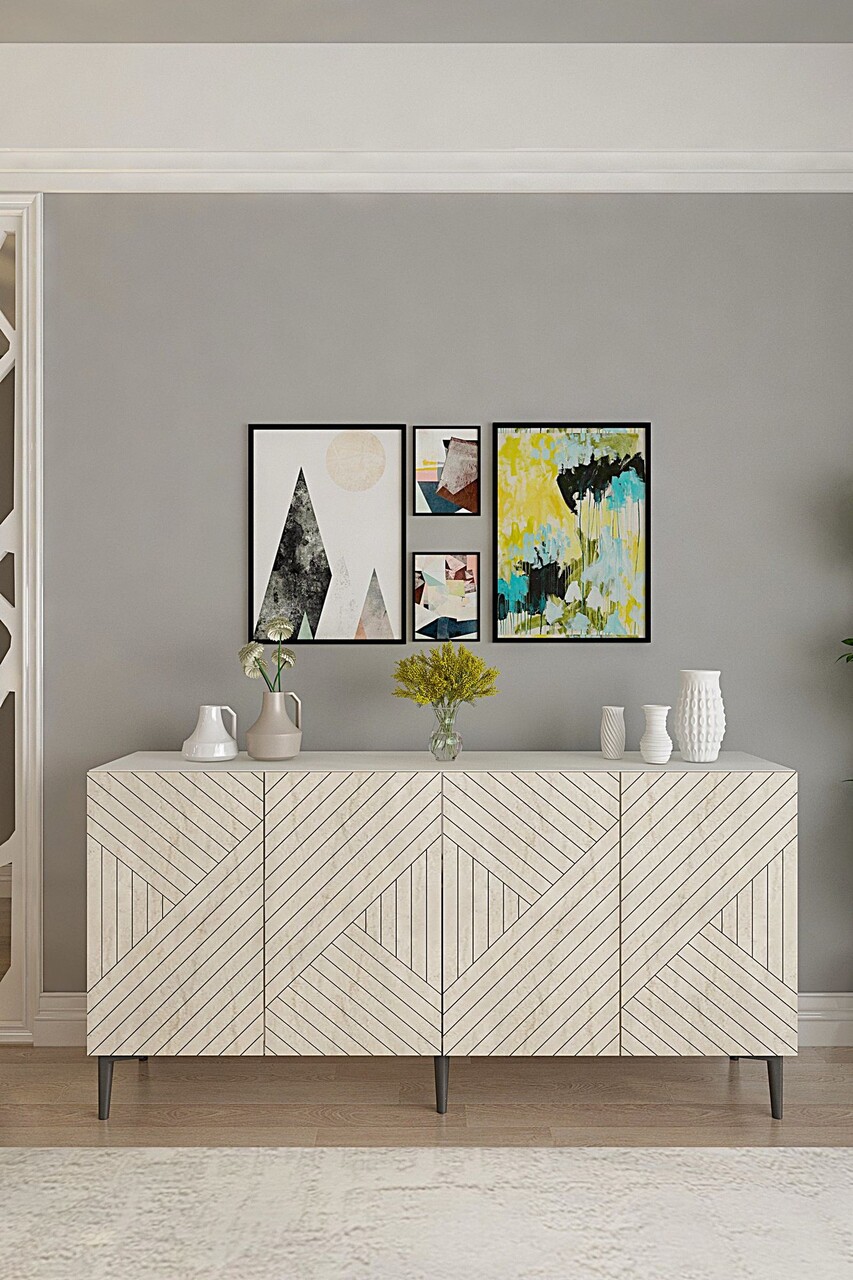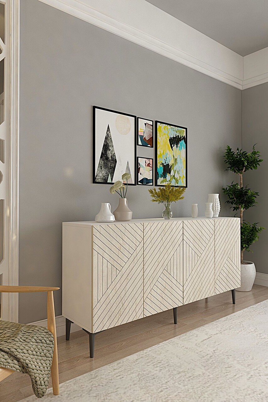 Consola, Hanah Home, Ferro 150, 150x75x32 cm, Alb / Travertin