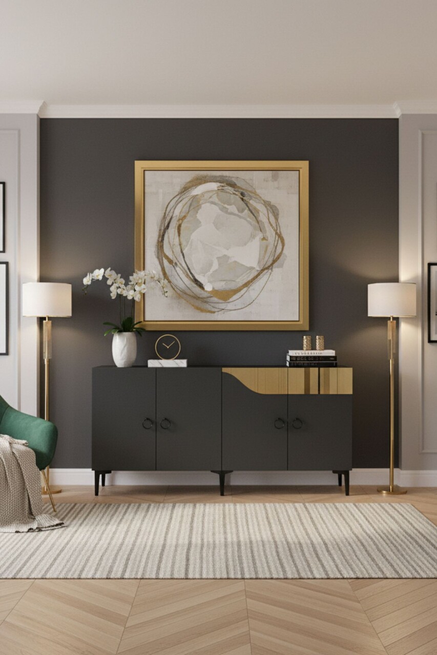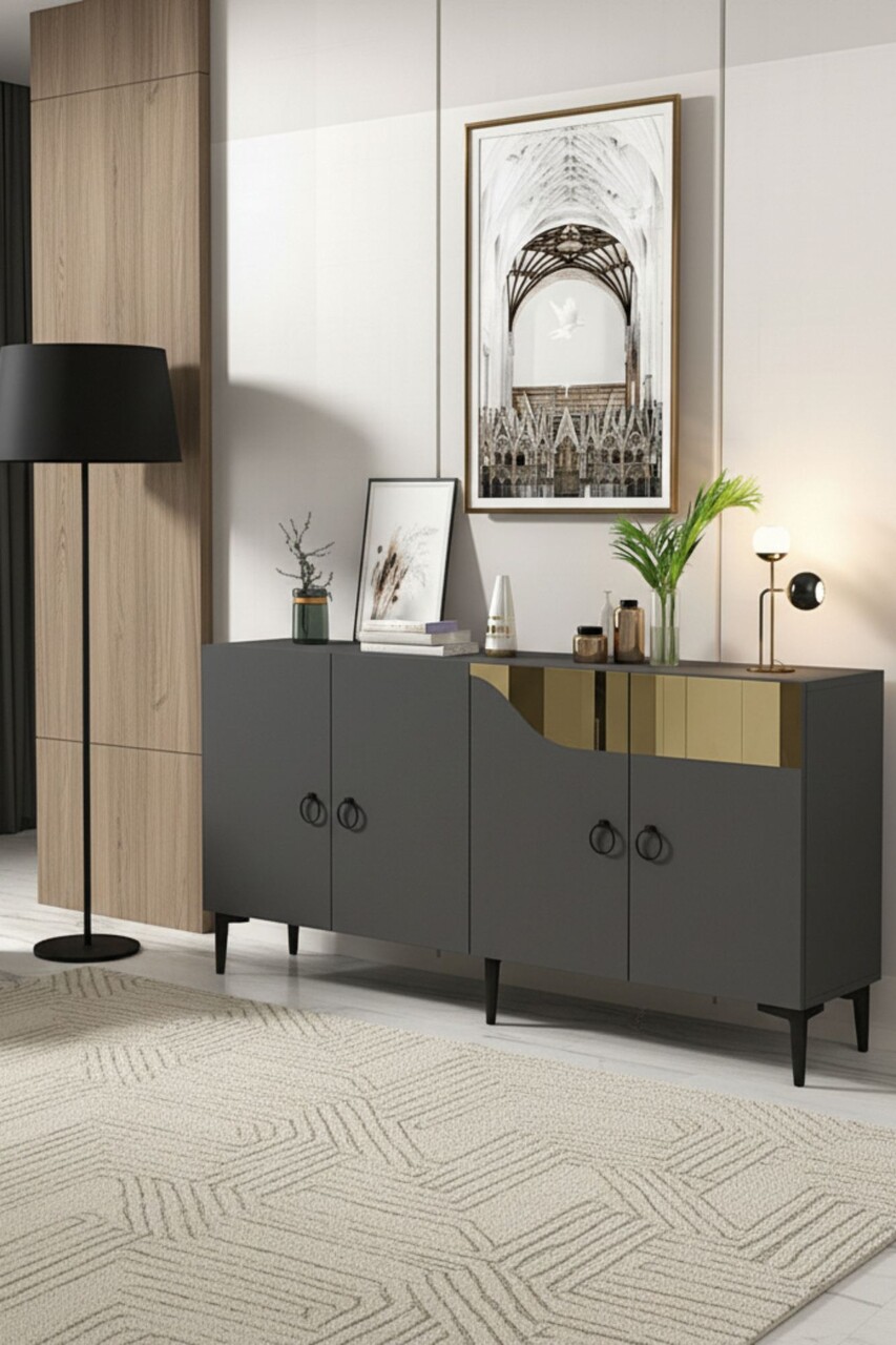 Consola, Hanah Home, Gama 150, 150x75x32 cm, PAL , Antracit / Aur