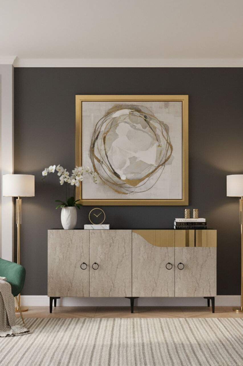 Consola, Hanah Home, Gama 150, 150x75x32 cm, PAL , White / Travertine / Gold