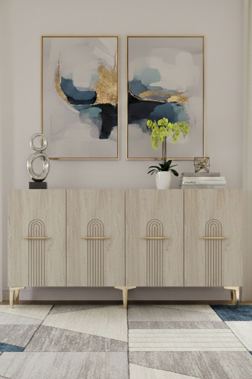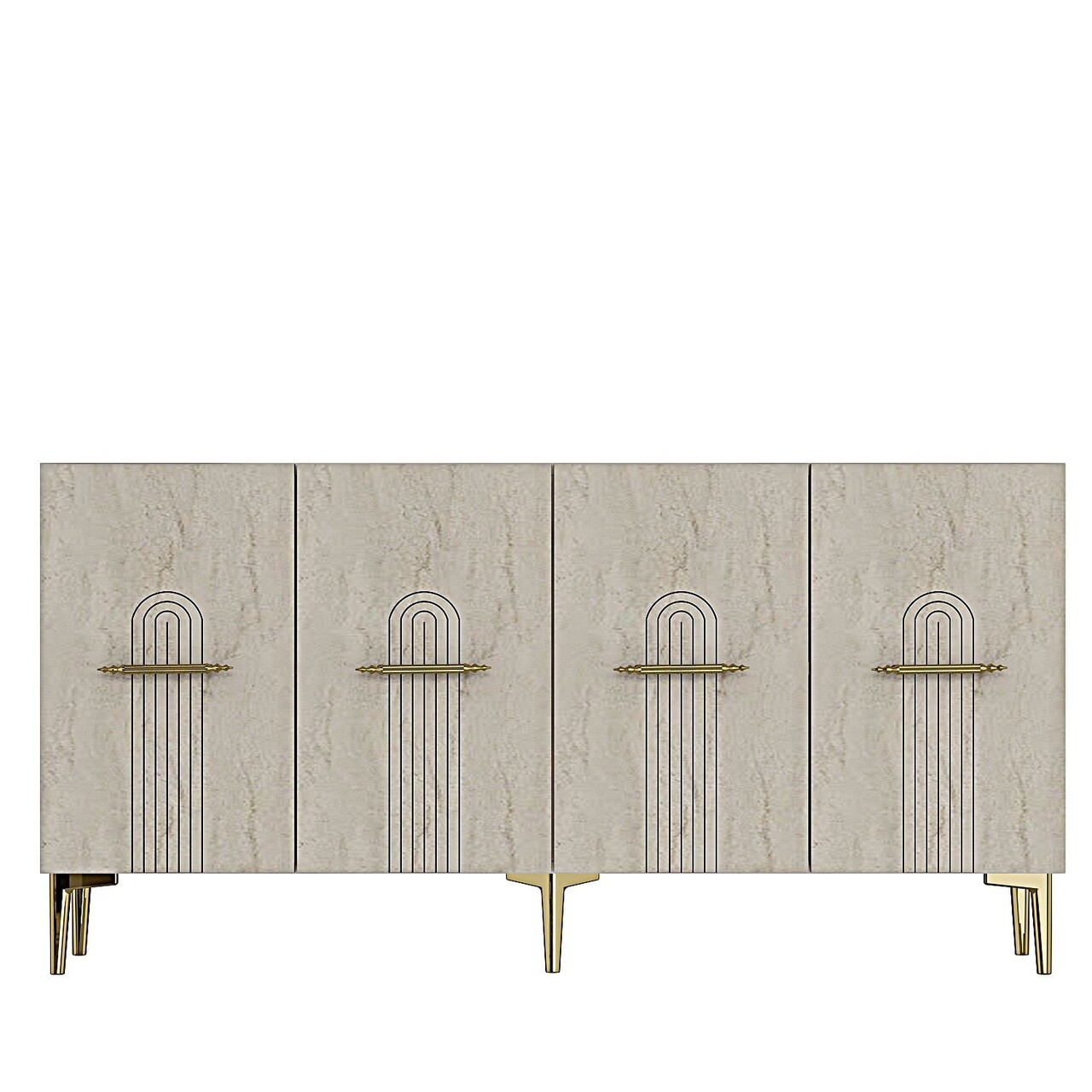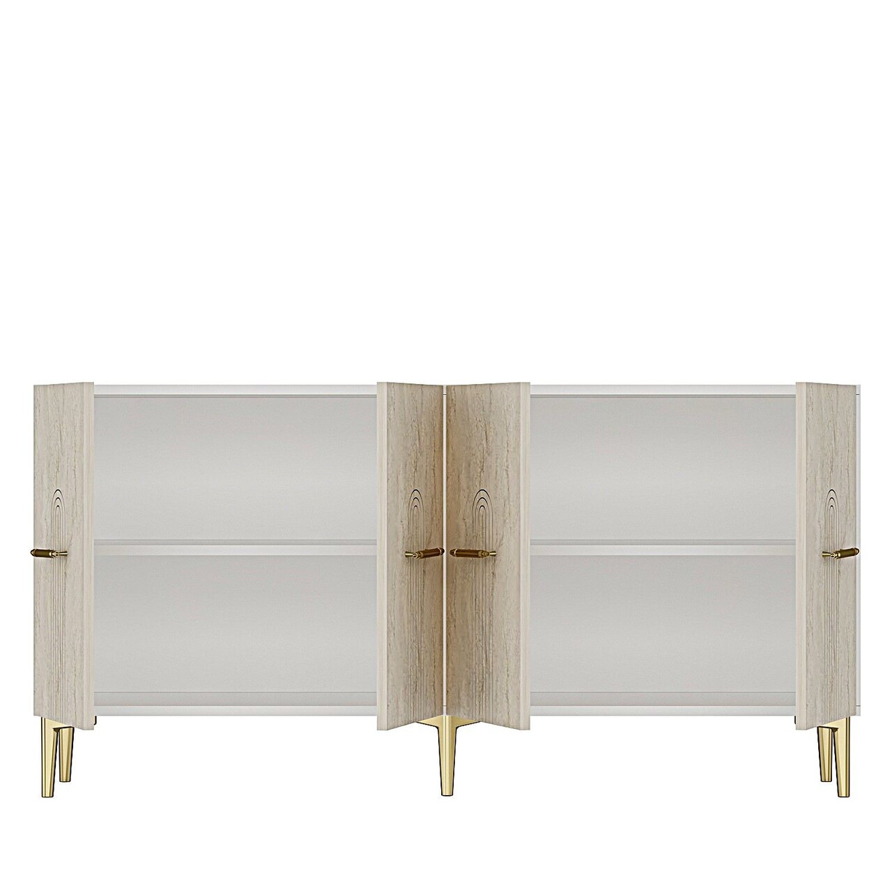 Consola, Hanah Home, Ida 150, 150x75x32 cm, White / Travertine / Gold
