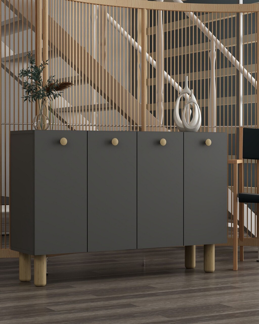 Consola, Hanah Home, Ilay Bohem, 120x80x29.6 cm, PAL , Stejar antracit / safir