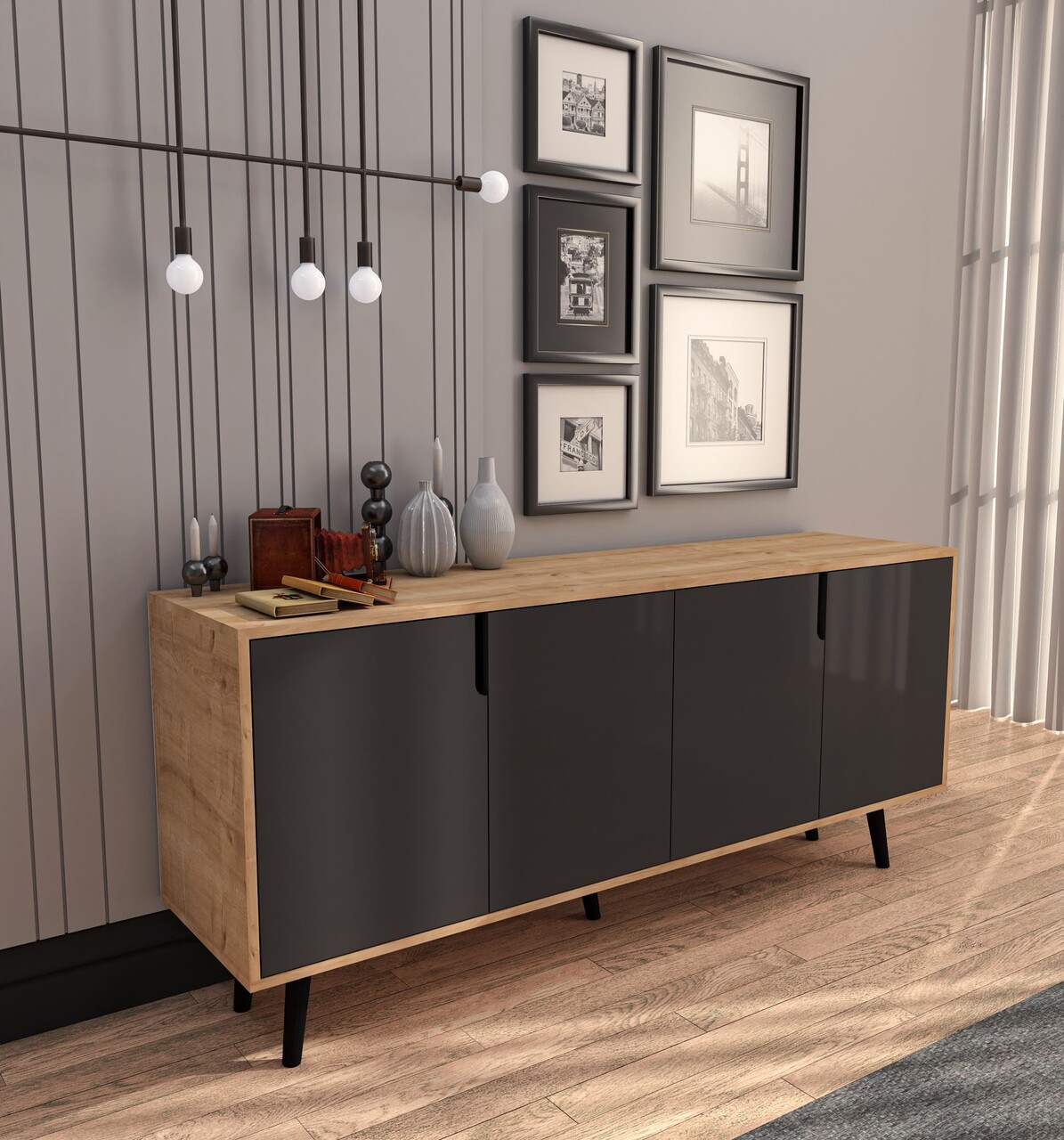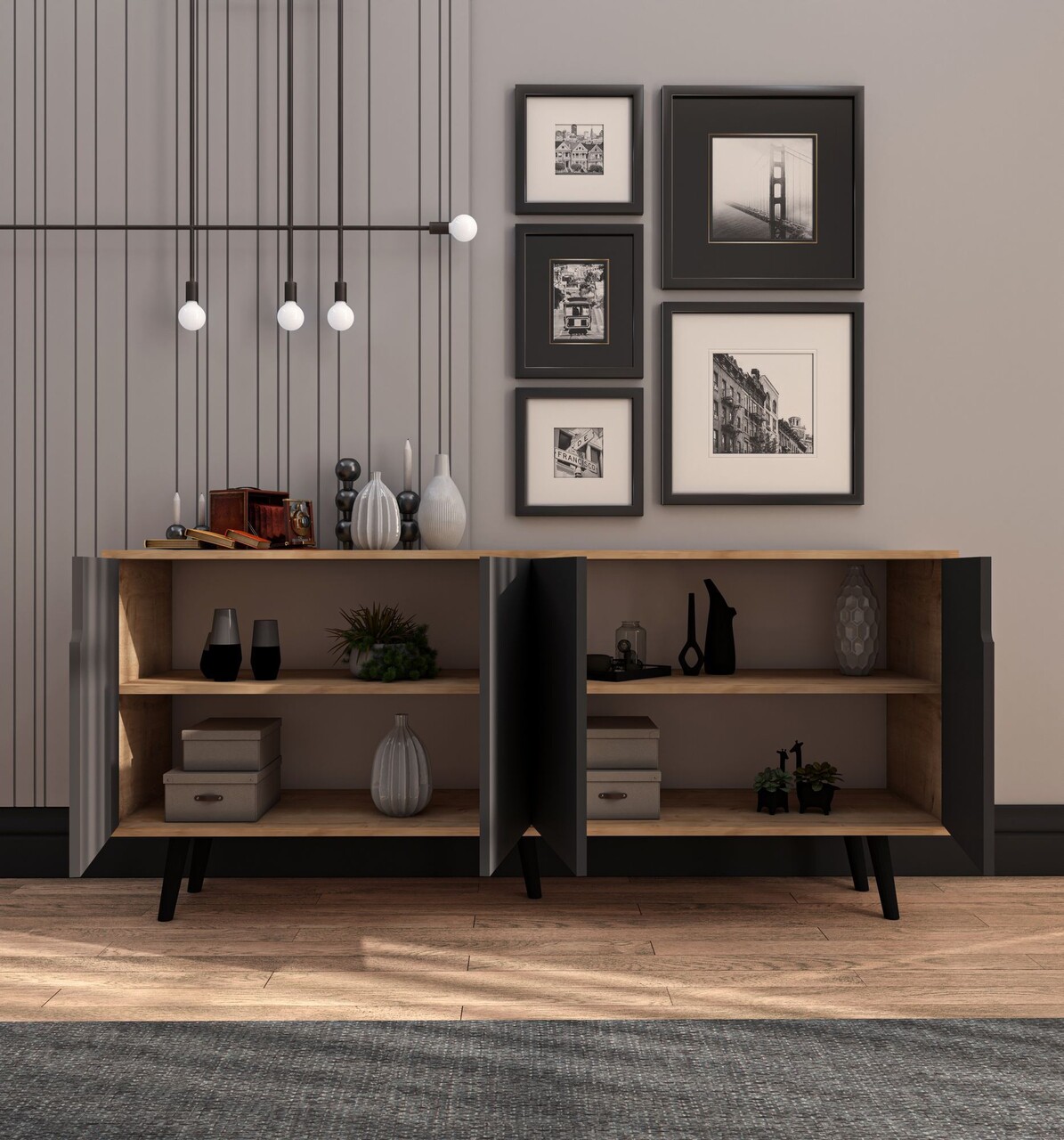Consola, Hanah Home, Latina Modern 180, 180x80x45 cm, PAL, Stejar safir / Antracit