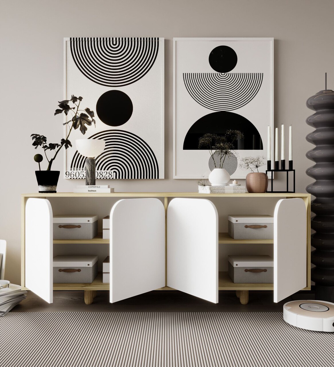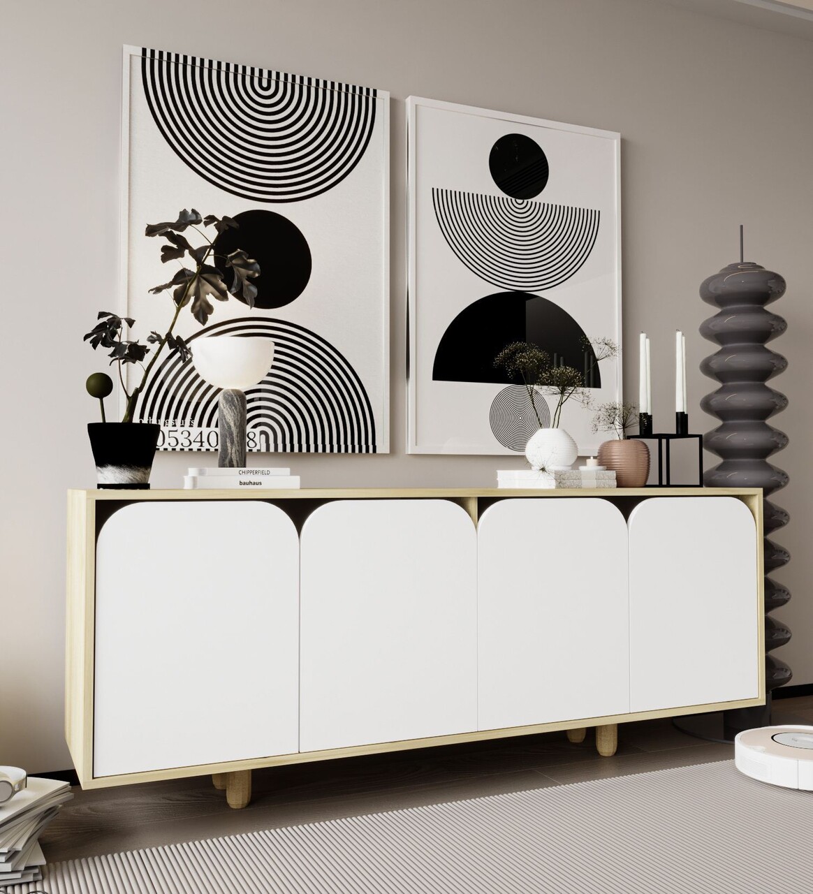 Consola, Hanah Home, Lazio Bohem 180, 180x75x45 cm, PAL, Stejar Safir / Alb
