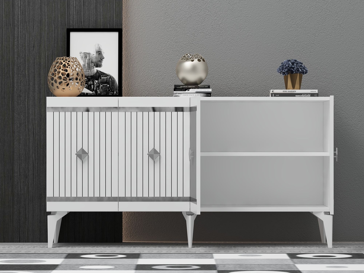 Consola, Hanah Home, Lenora, 150x79x40 cm, PAL , Alb / Argintiu