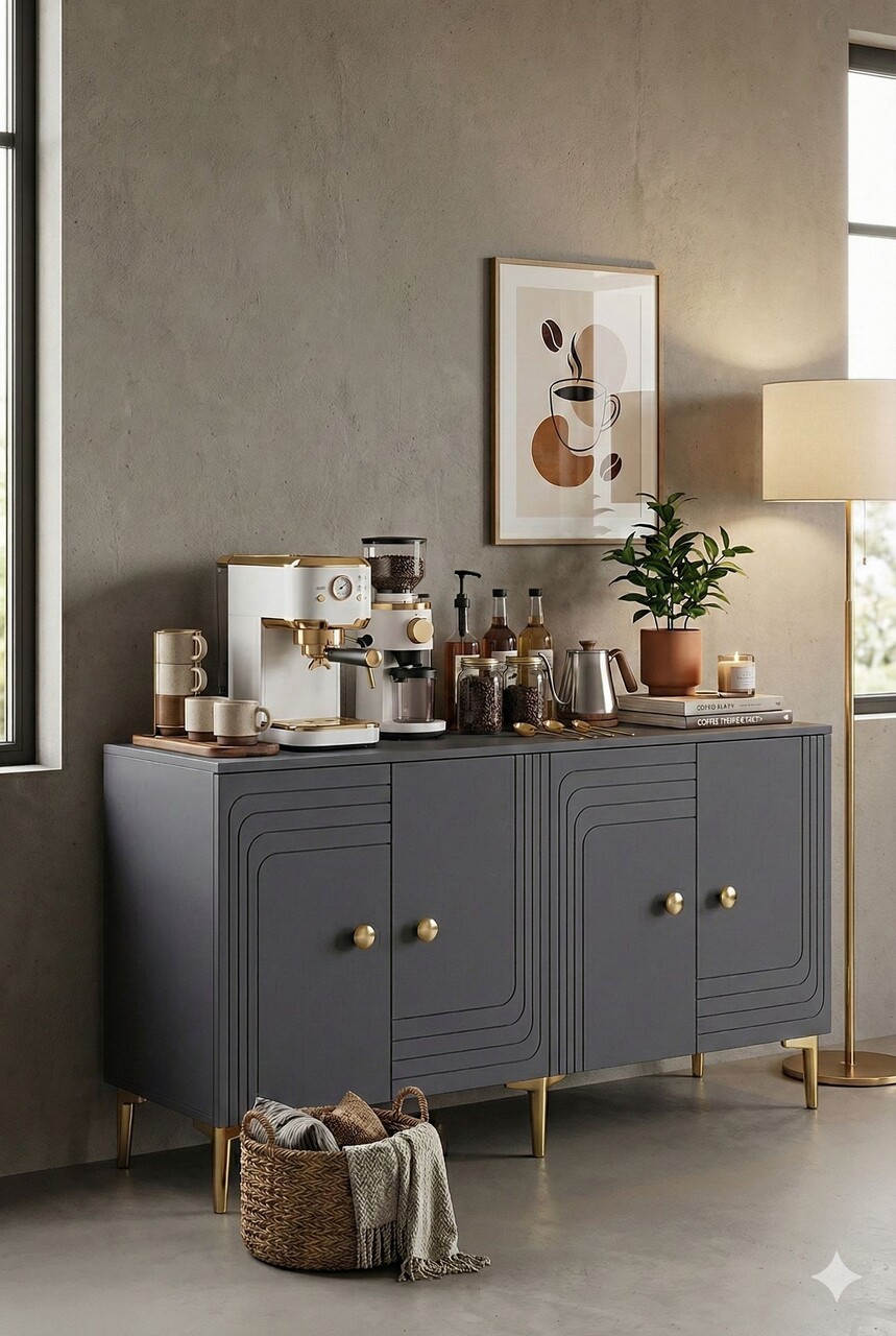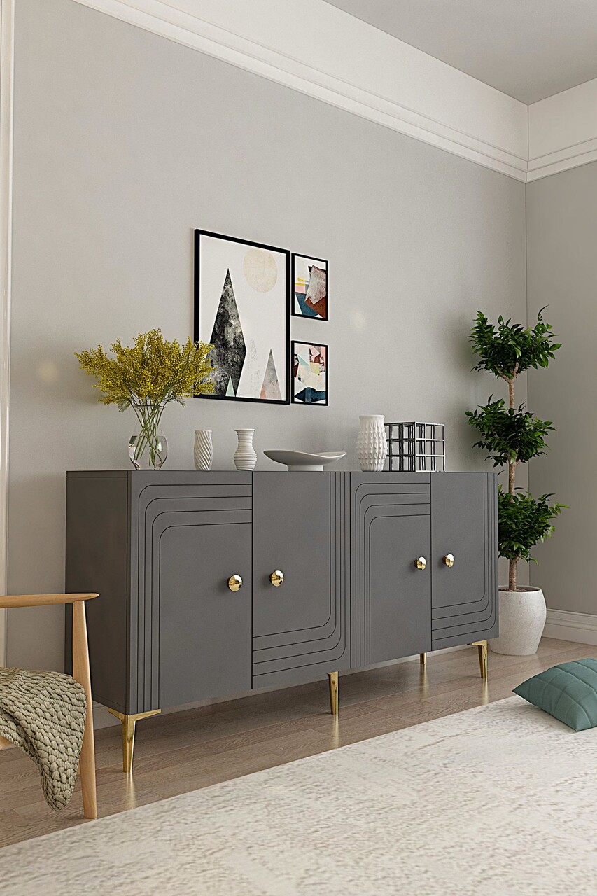 Consola, Hanah Home, Lessi 150, 150x75x32 cm, Antracit / Aur