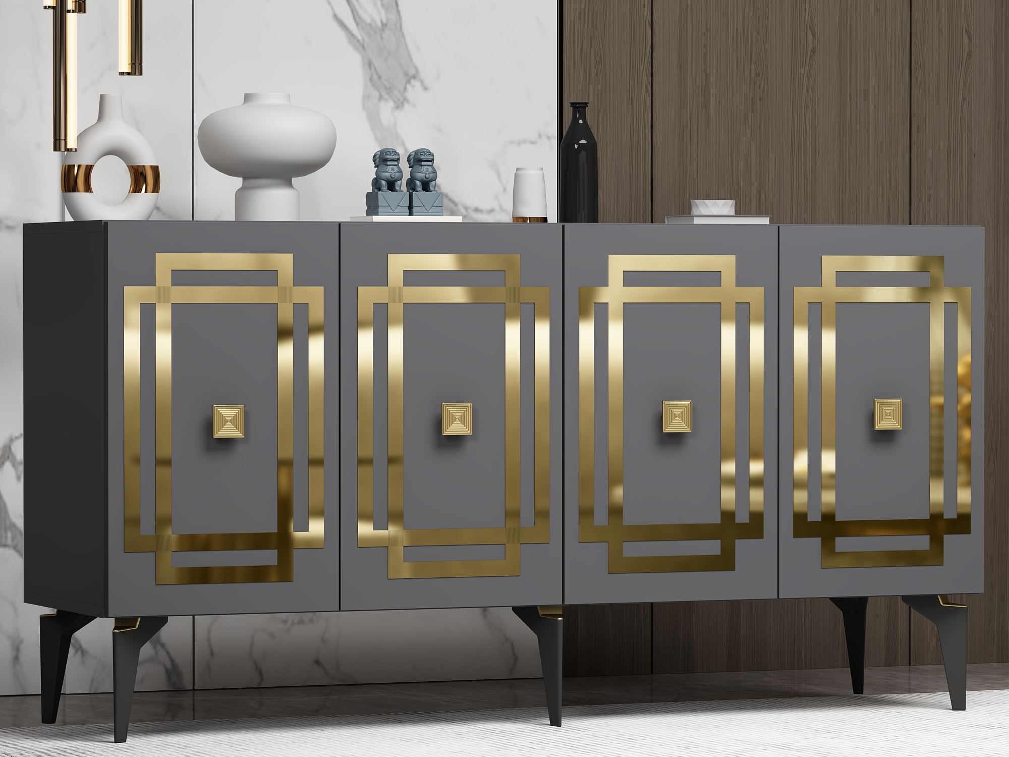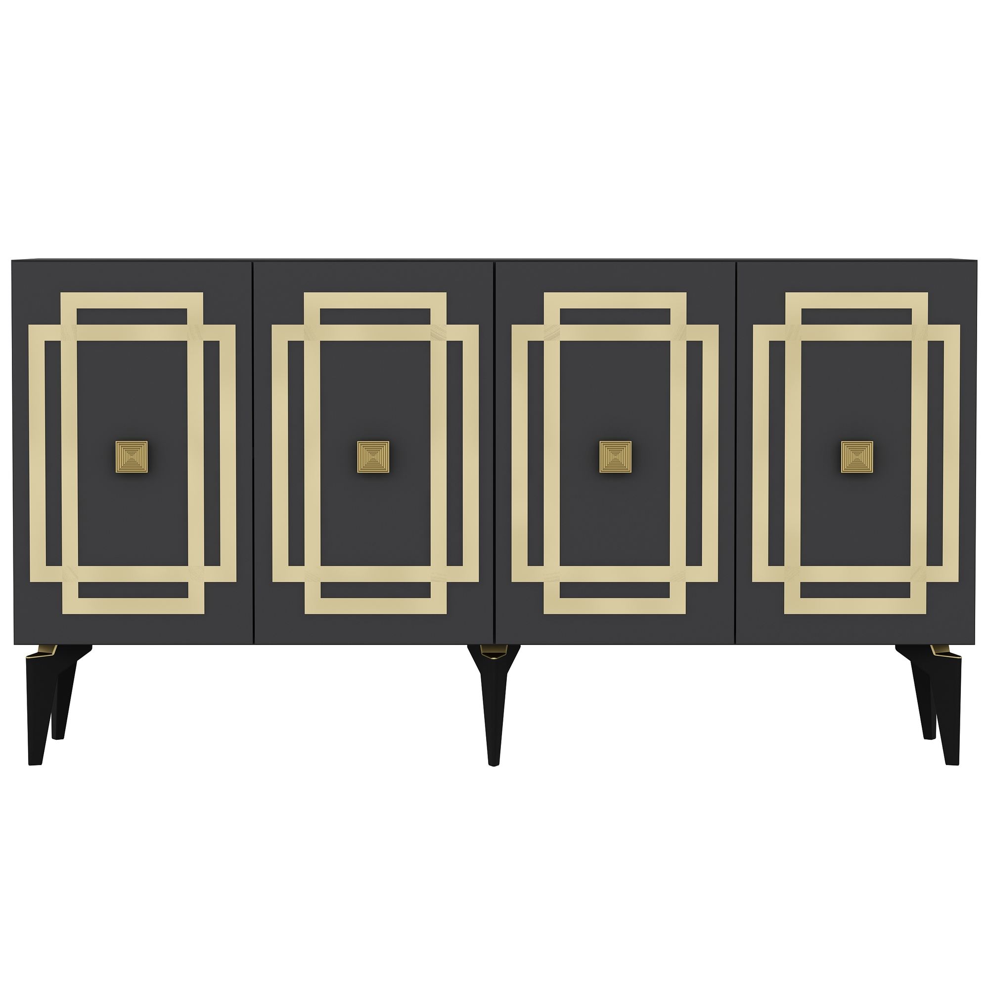 Consola, Hanah Home, Lotus, 150x79x40 cm, PAL , Antracit / Aur