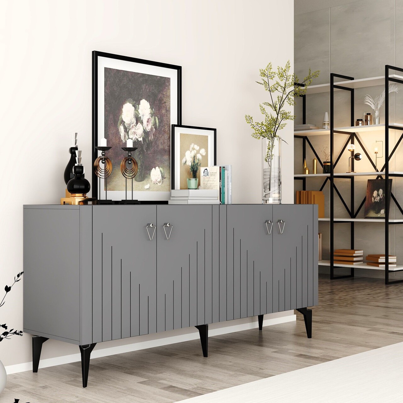 Consola, Hanah Home, Meda, 150x79x40 cm, PAL , Antracit / Argintiu