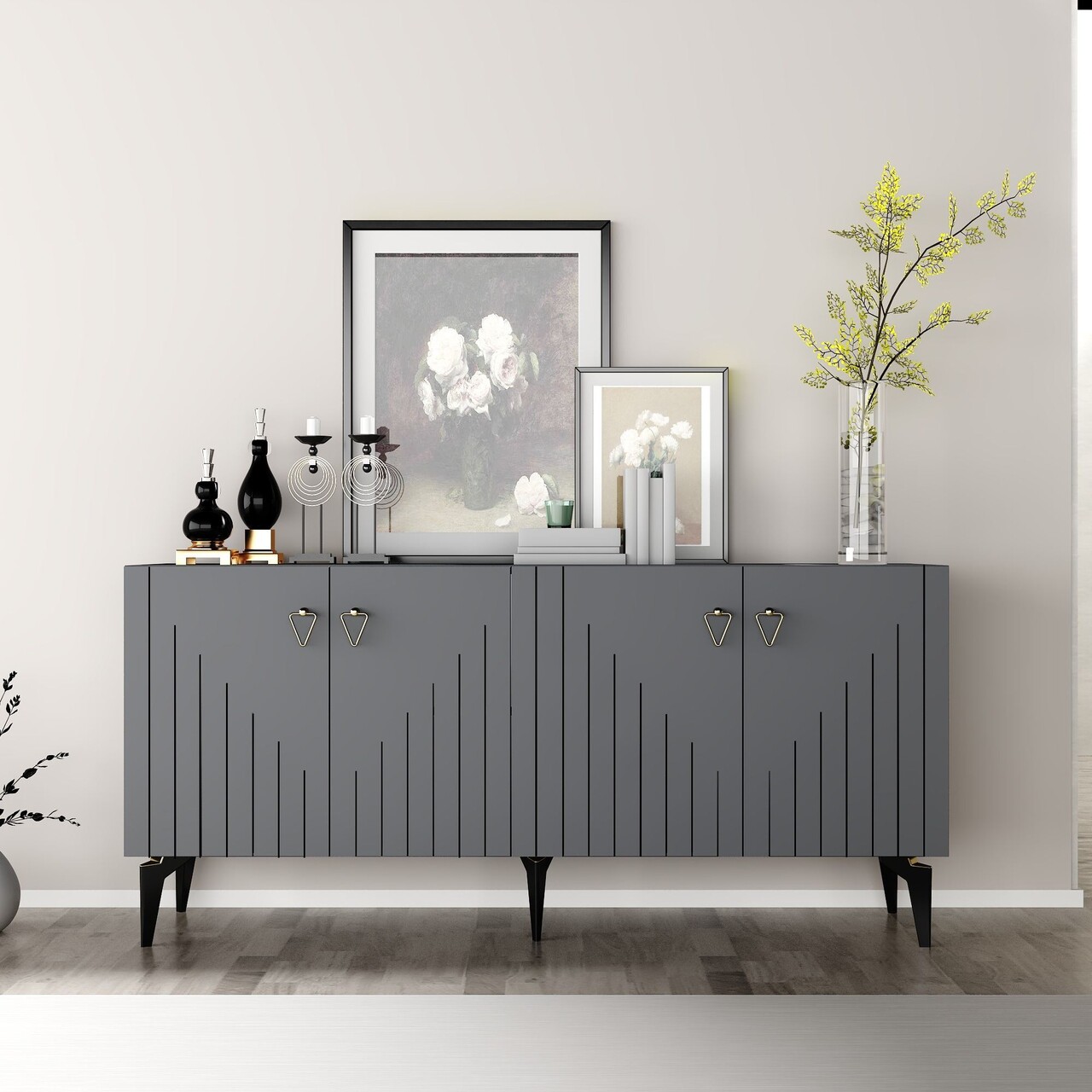 Consola, Hanah Home, Meda, 150x79x40 cm, PAL , Antracit / Aur