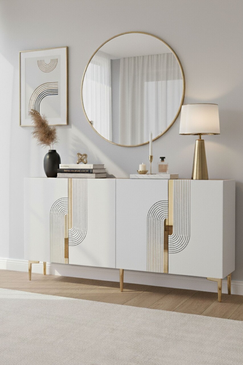 Consola, Hanah Home, Meyra 150, 150x75x32 cm, PAL , Alb/Auriu