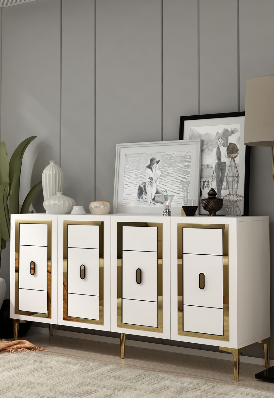Consola, Hanah Home, Orion, 150x75x35 cm, PAL , Alb/Auriu