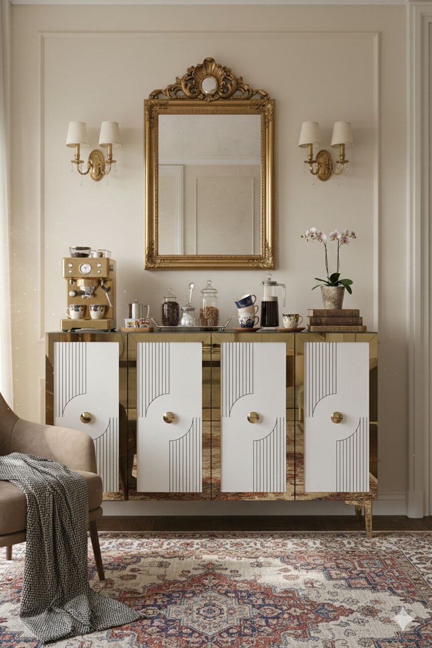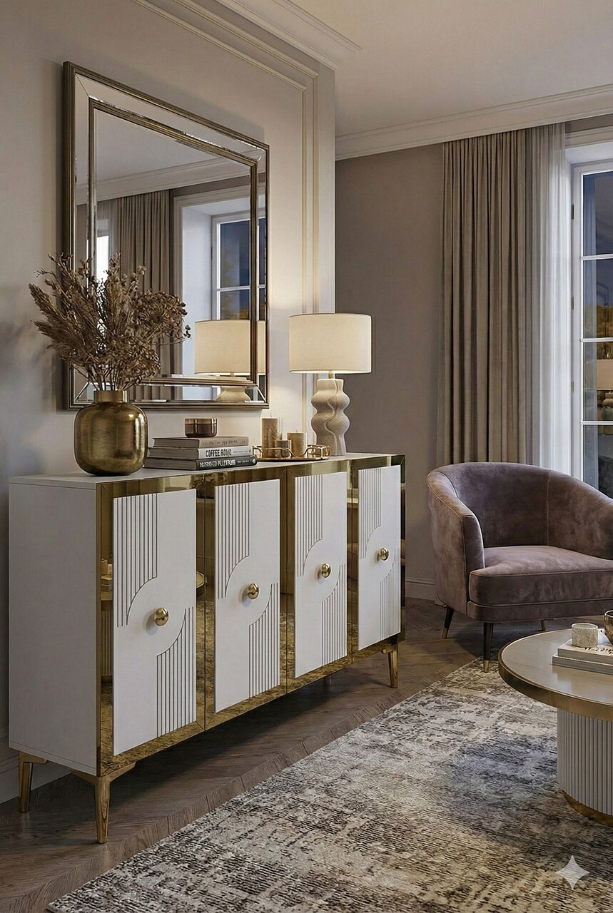 Consola, Hanah Home, Pega 120, 120x79x32 cm, Alb/Auriu