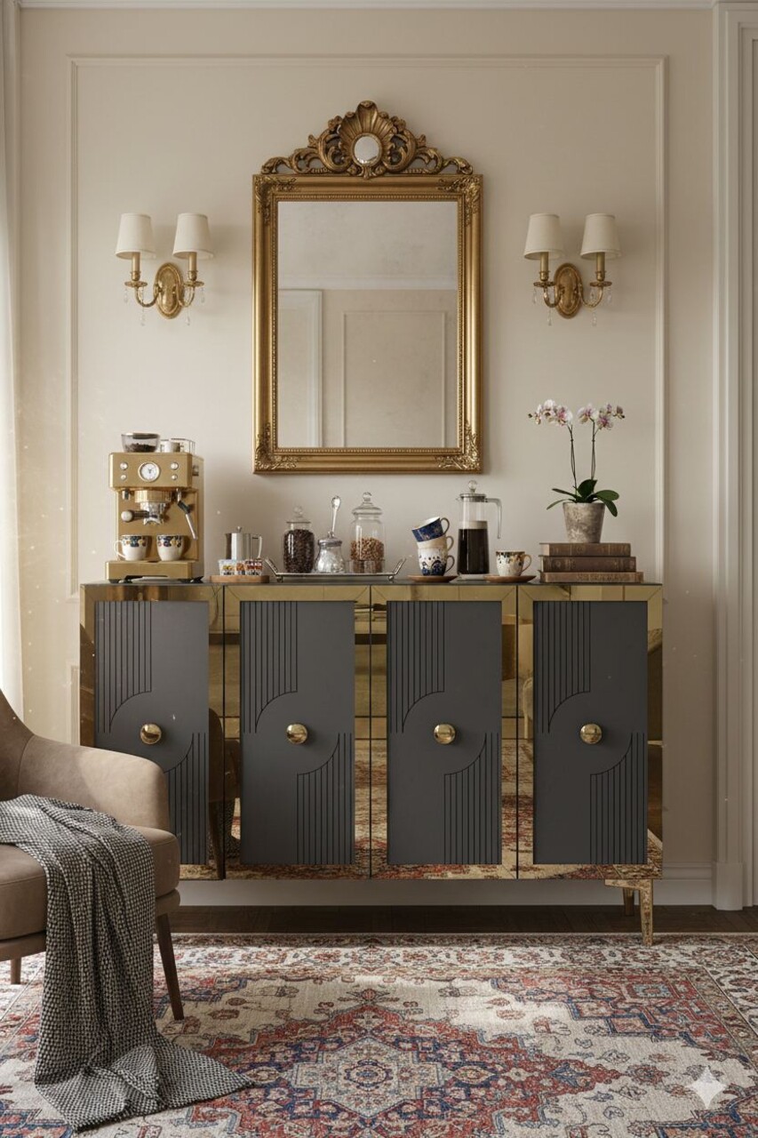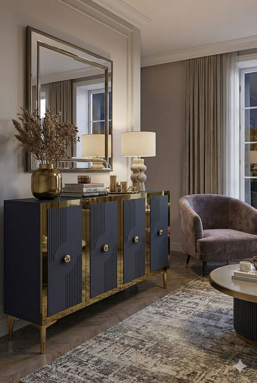 Consola, Hanah Home, Pega 120, 120x79x32 cm, Antracit / Aur