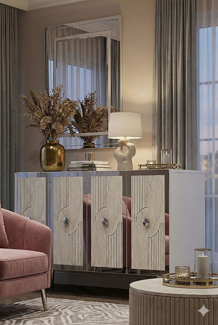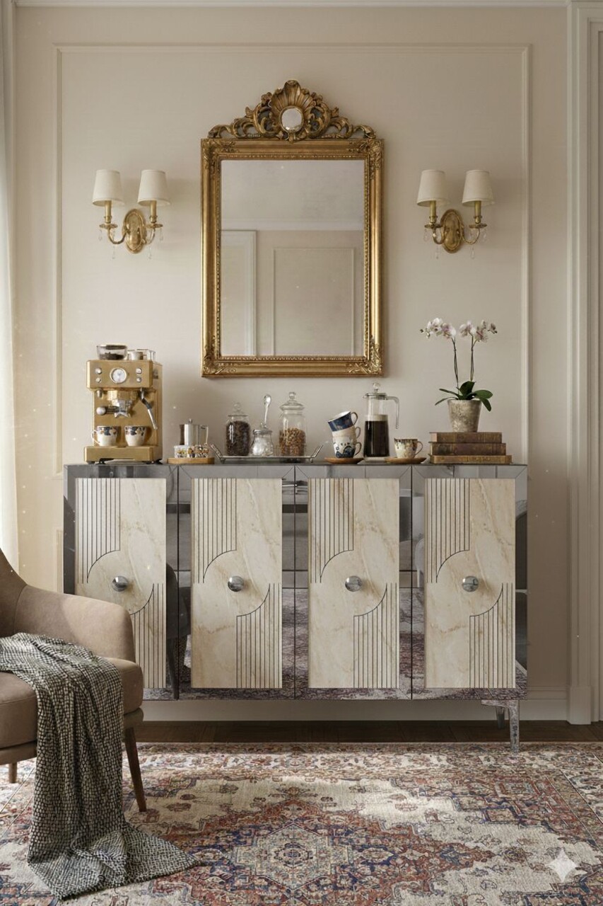 Consola, Hanah Home, Pega 120, 120x79x32 cm, White / Travertine / Silver