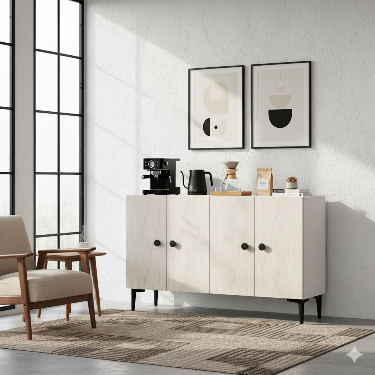 Consola, Hanah Home, Pella 120, 120x75x32 cm, Alb / Travertin