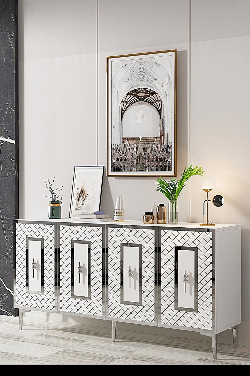 Consola, Hanah Home, Puma 150, 150x75x32 cm, PAL , Alb / Argintiu