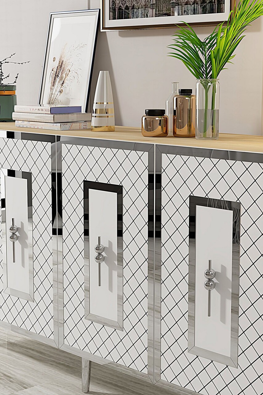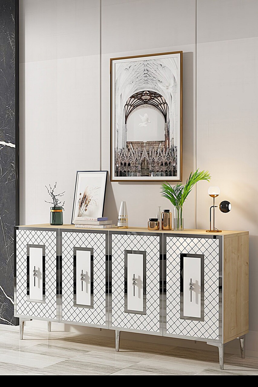 Consola, Hanah Home, Puma 150, 150x75x32 cm, PAL , Stejar Safir / Alb / Argintiu