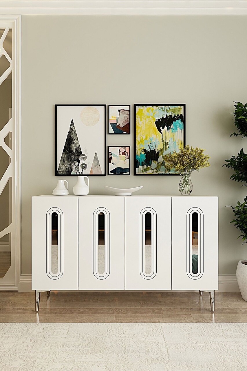 Consola, Hanah Home, Rany 120, 120x75x32 cm, Alb / Argintiu