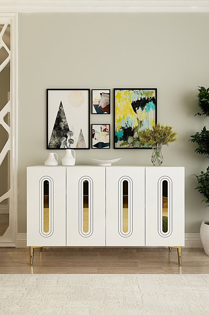 Consola, Hanah Home, Rany 120, 120x75x32 cm, Alb/Auriu