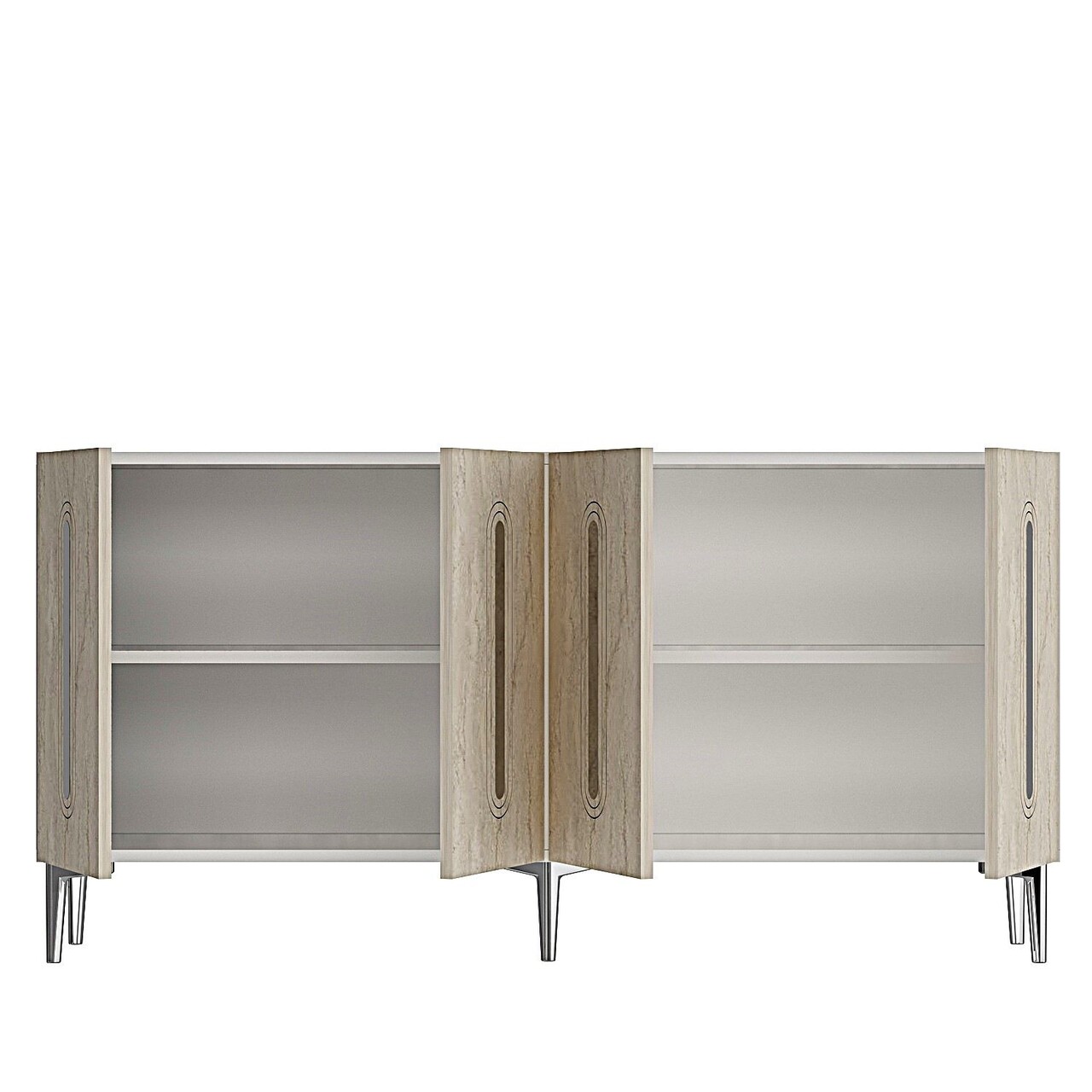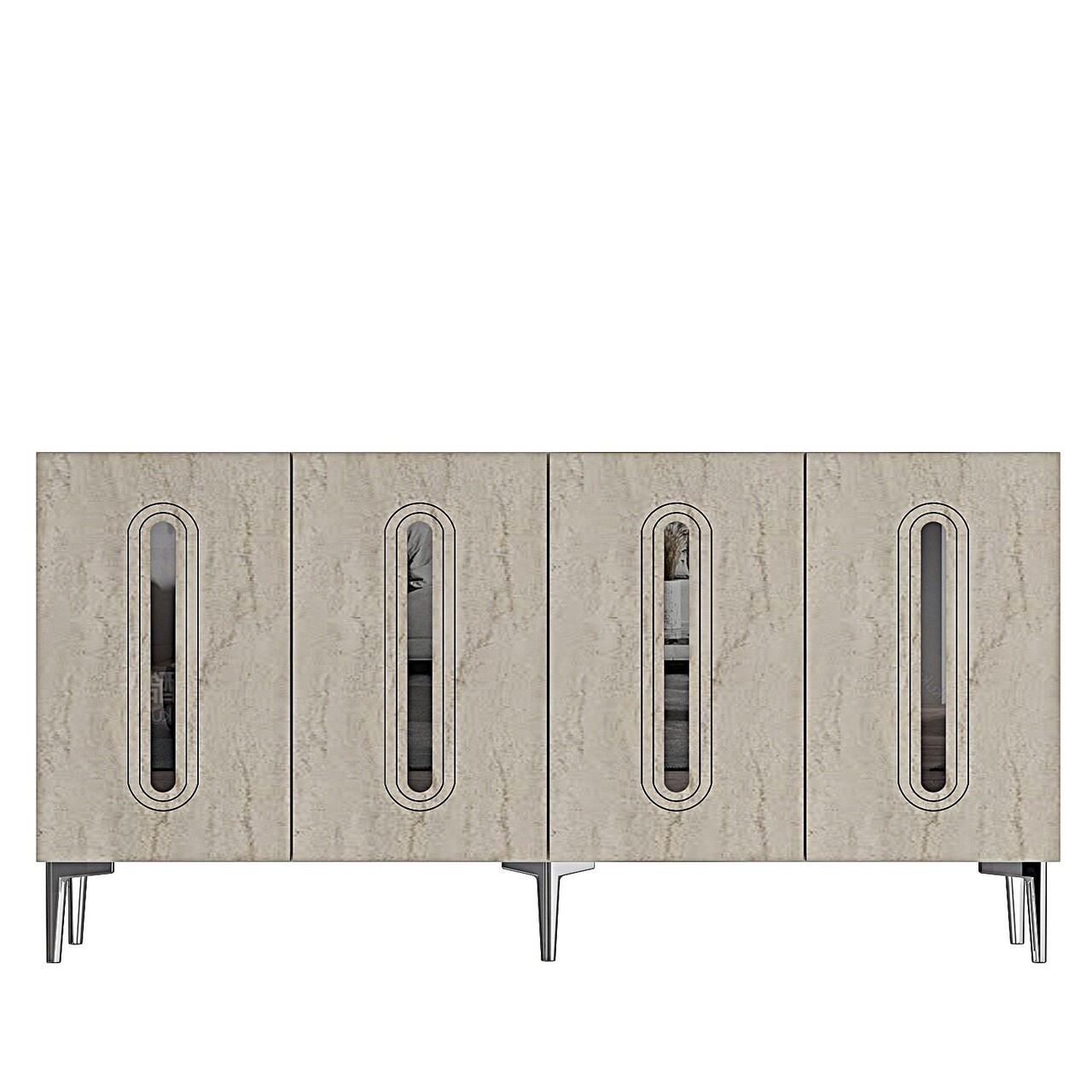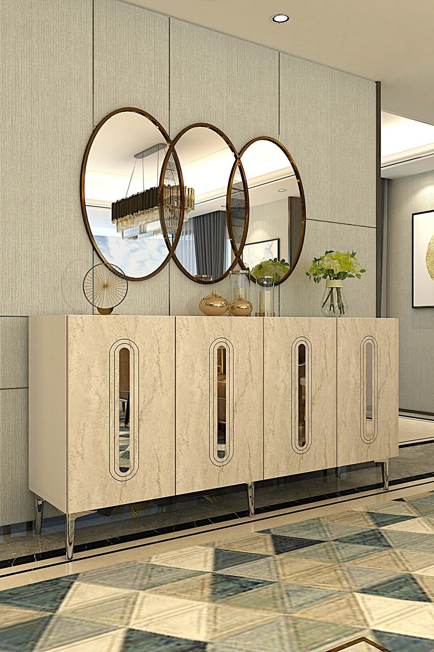 Consola, Hanah Home, Rany 150, 150x75x32 cm, White / Travertine / Silver
