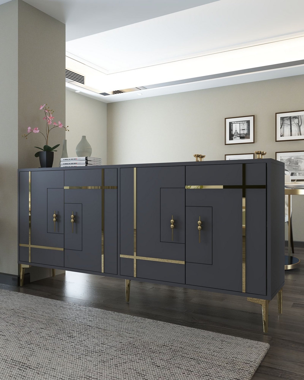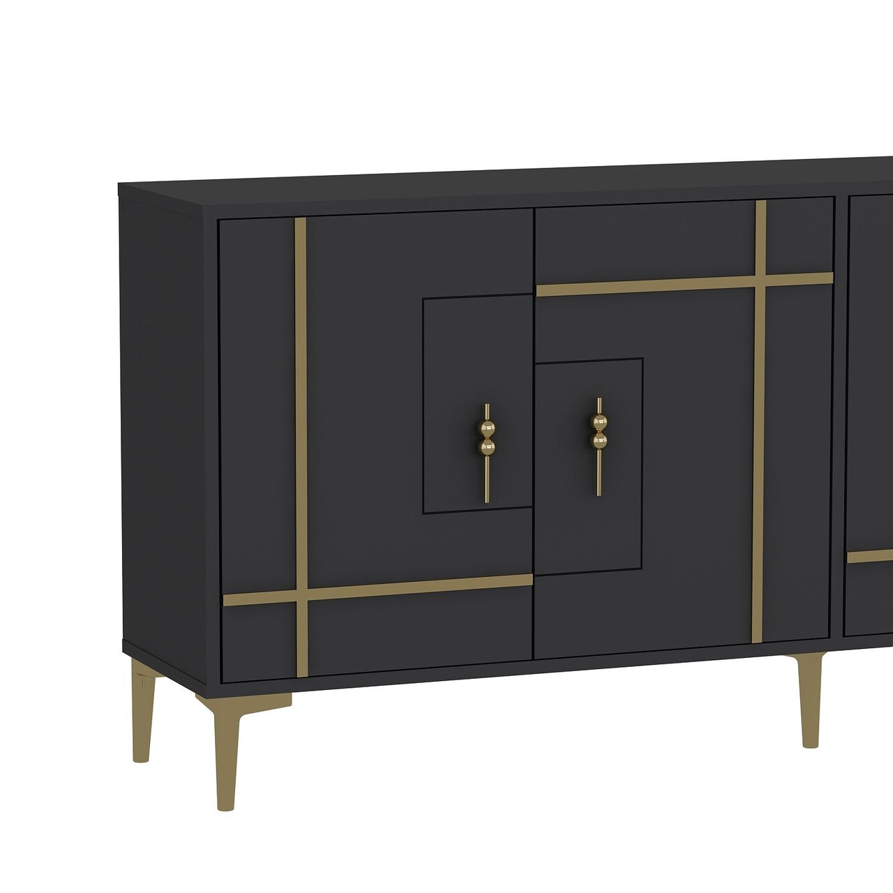 Consola, Hanah Home, Simge, 180x78.6x35 cm, PAL , Antracit / Aur