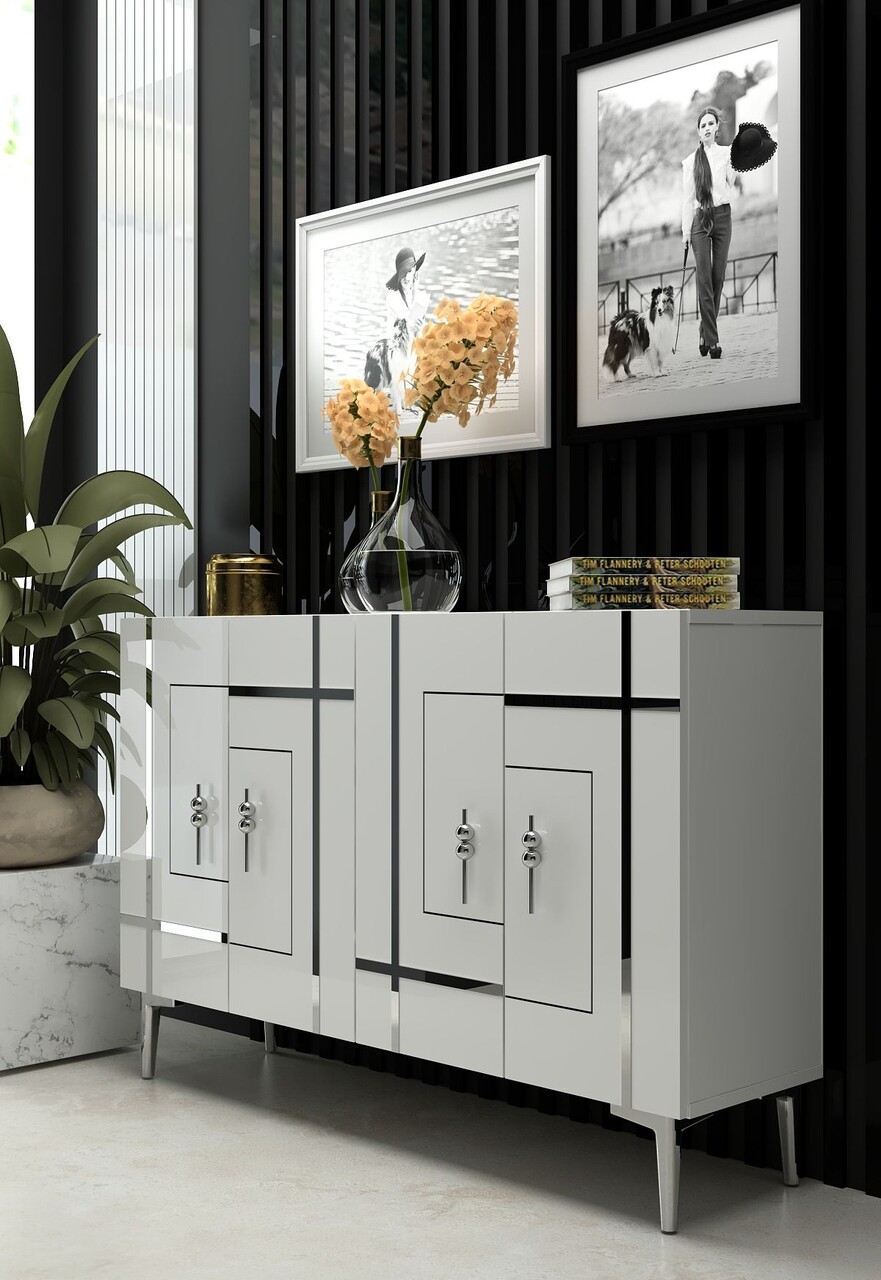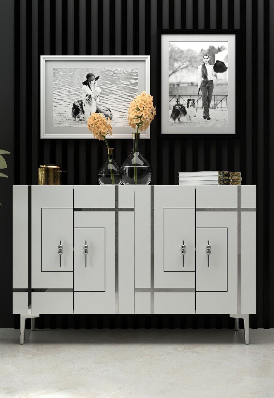 Consola, Hanah Home, Sina, 120x80x29.6 cm, PAL , Alb / Argintiu