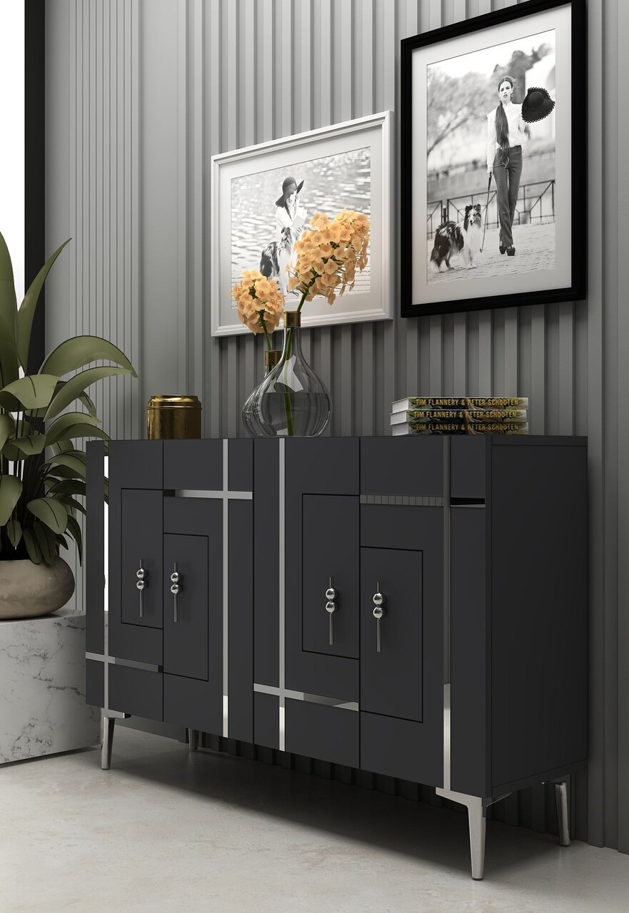 Consola, Hanah Home, Sina, 120x80x29.6 cm, PAL , Antracit / Argintiu