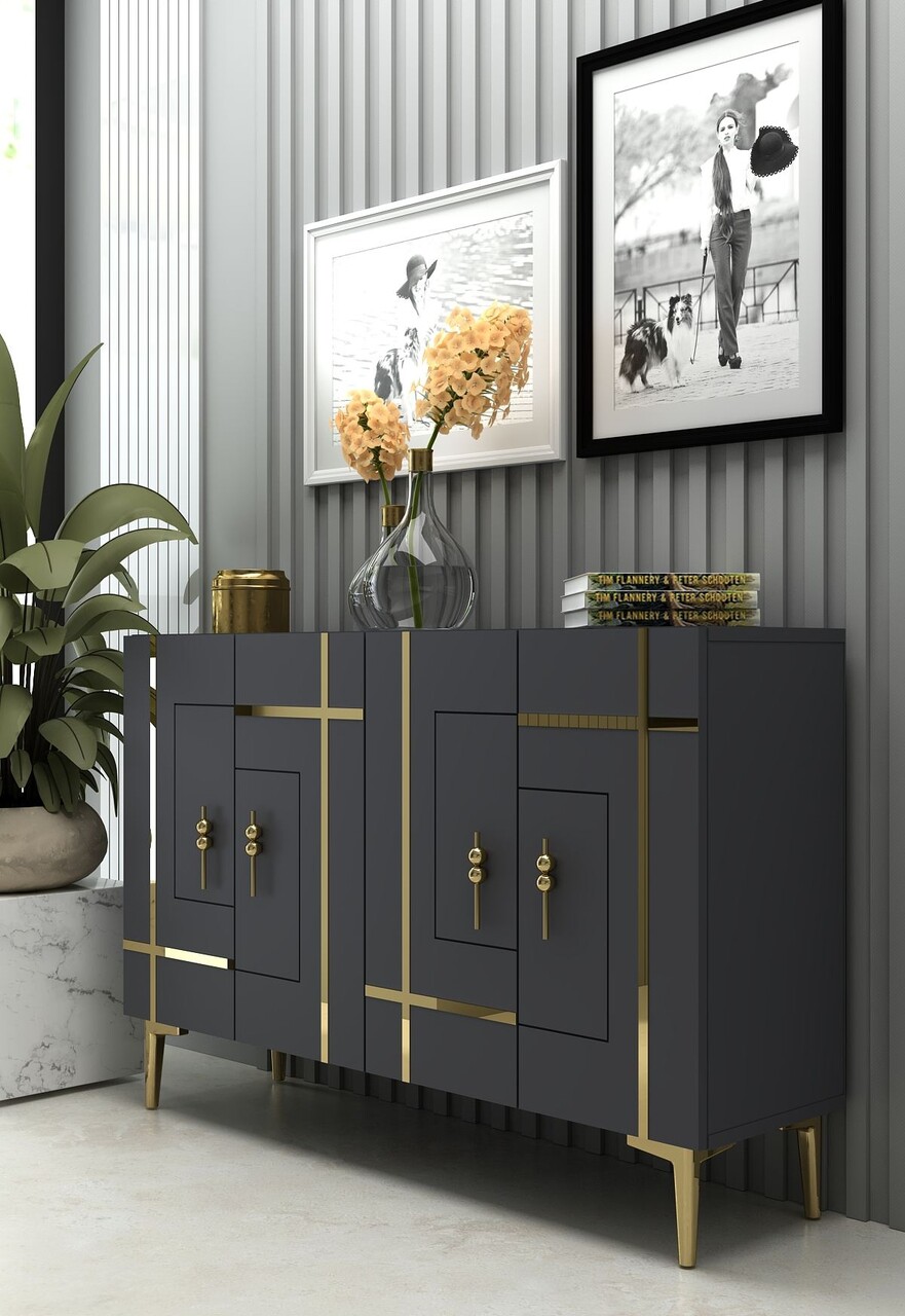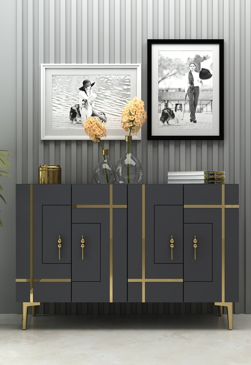 Consola, Hanah Home, Sina, 120x80x29.6 cm, PAL , Antracit / Aur