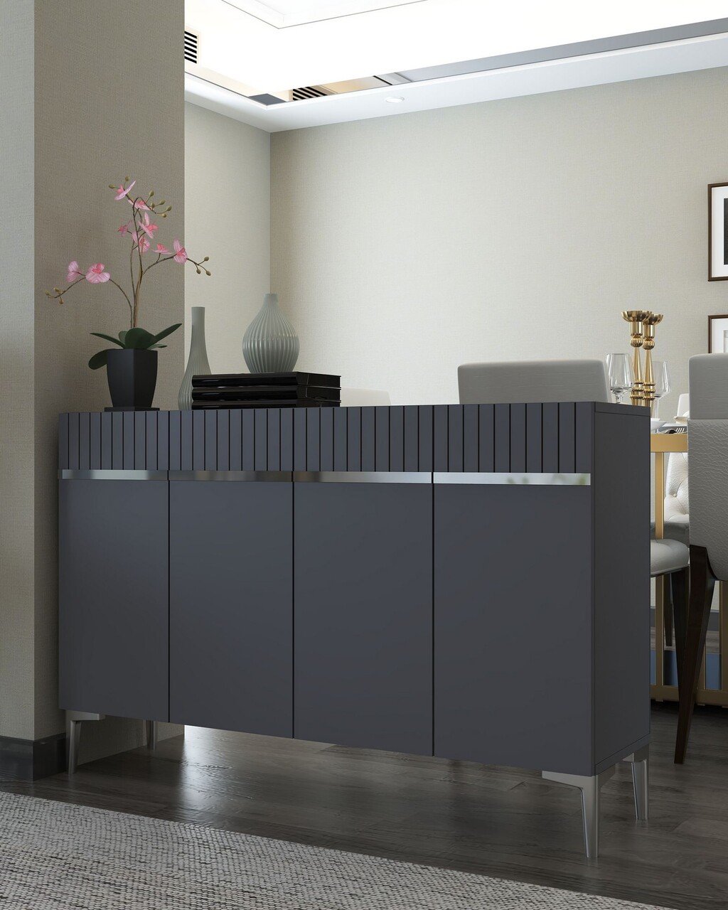 Consola, Hanah Home, Swiss, 120x80x29.6 cm, PAL , Antracit / Argintiu