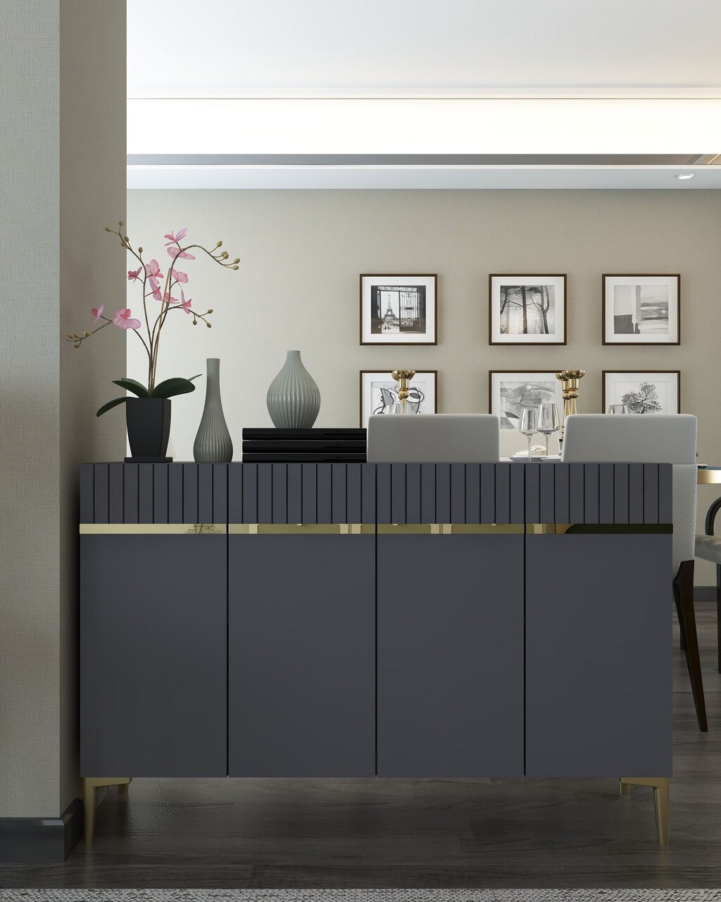 Consola, Hanah Home, Swiss, 120x80x29.6 cm, PAL , Antracit / Aur