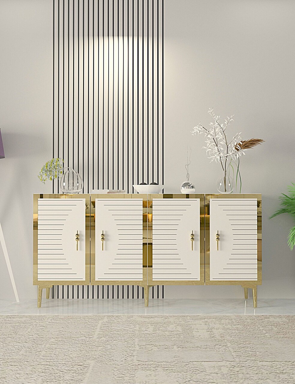 Consola, Hanah Home, Tuna, 150x75x32 cm, PAL , Alb/Auriu
