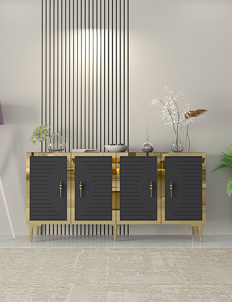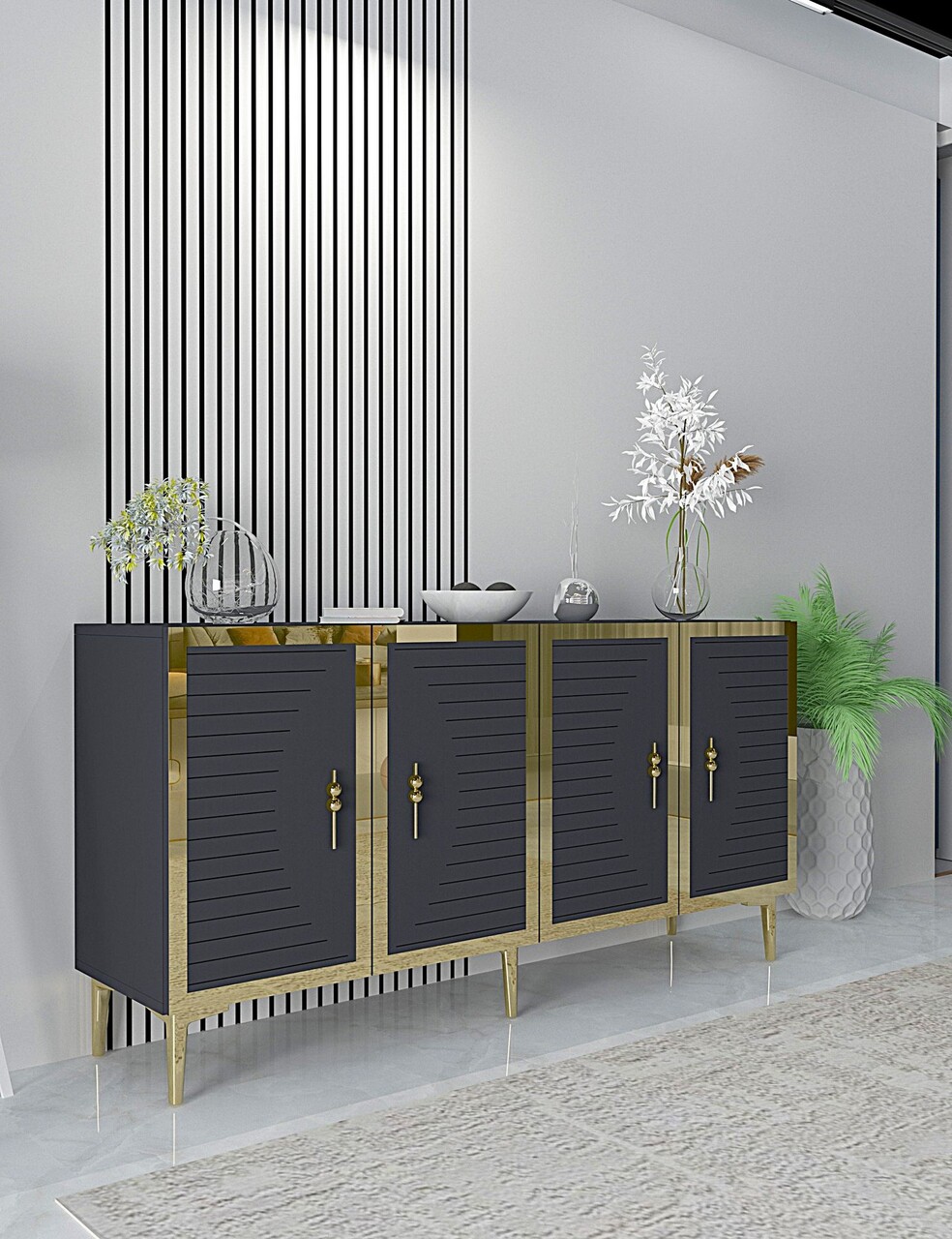 Consola, Hanah Home, Tuna, 150x75x32 cm, PAL , Antracit / Aur