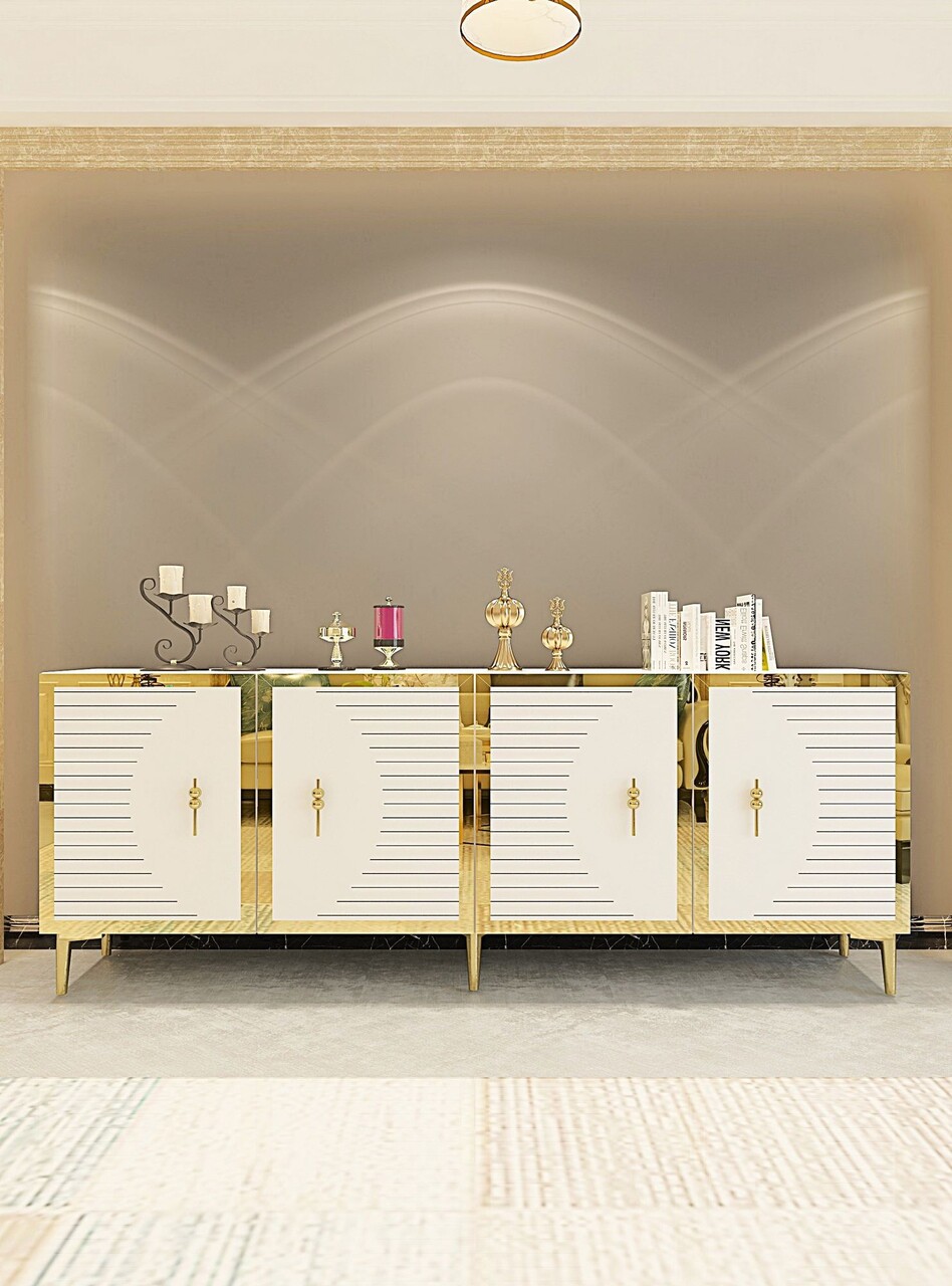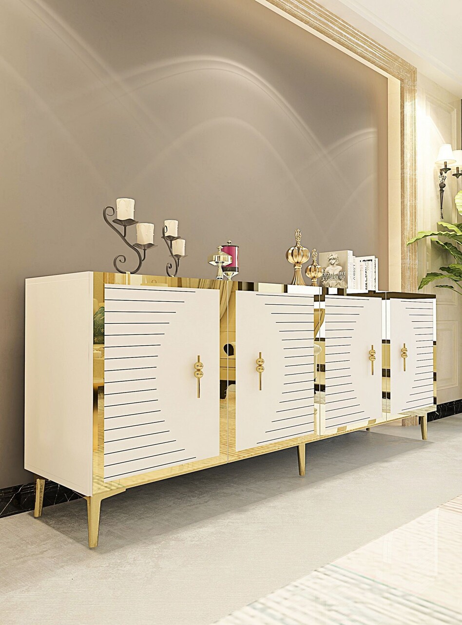 Consola, Hanah Home, Tuna 180, 180x75x32 cm, PAL , Alb/Auriu