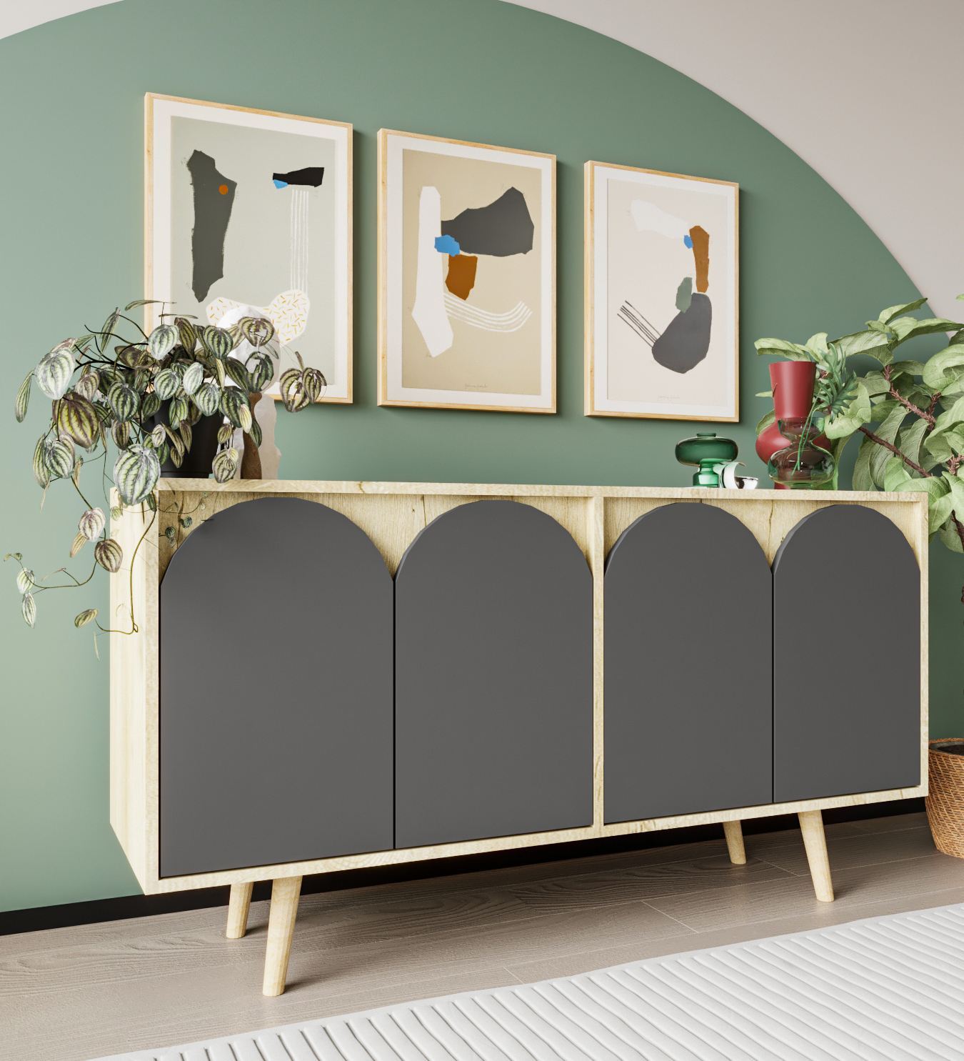 Consola, Hanah Home, Venezia 150, 150x80x45 cm, PAL, Stejar safir / Antracit