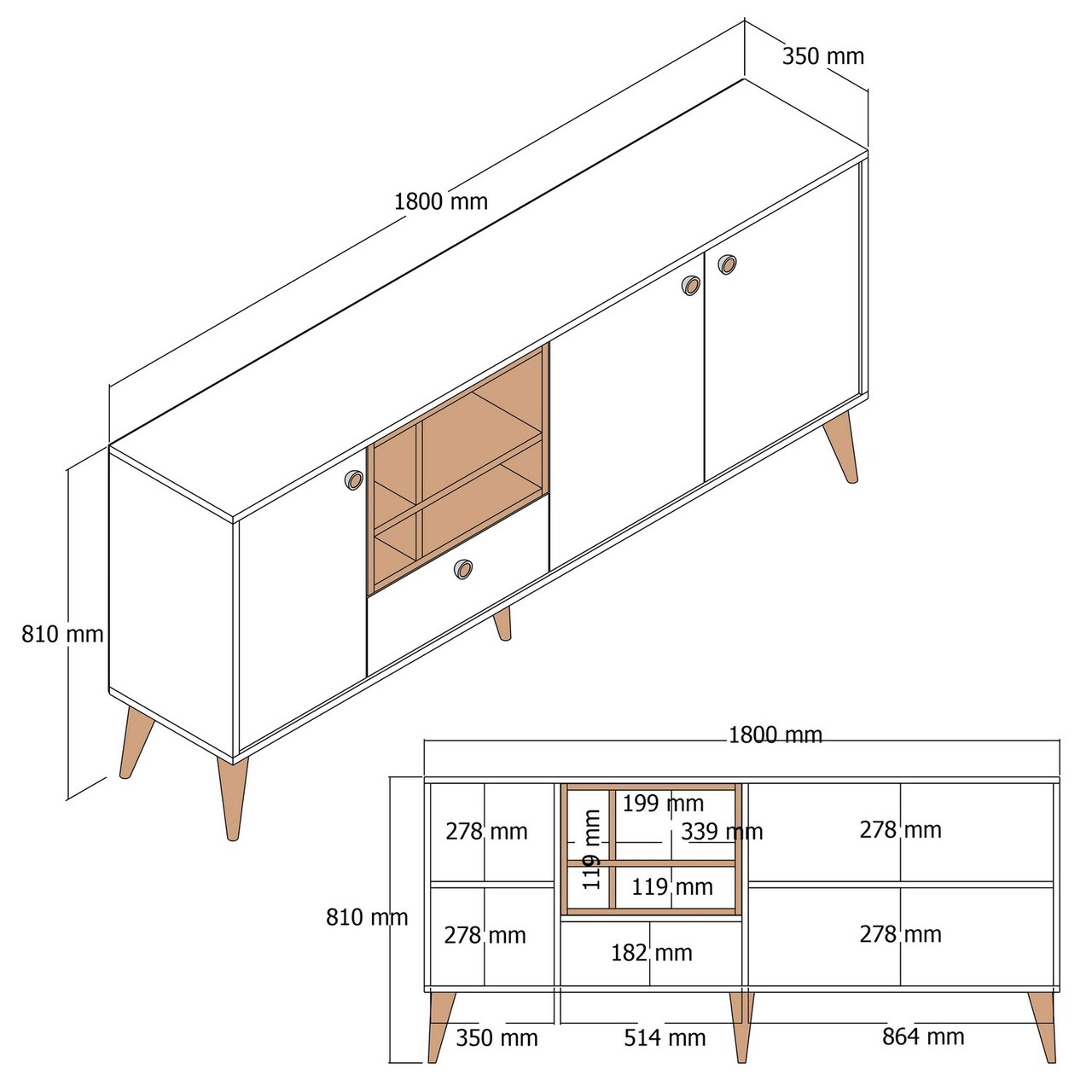 Latime: 180 cm Inaltime: 81 cm Adancime: 35 cm