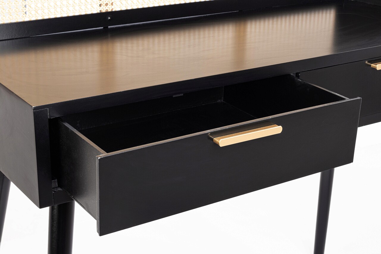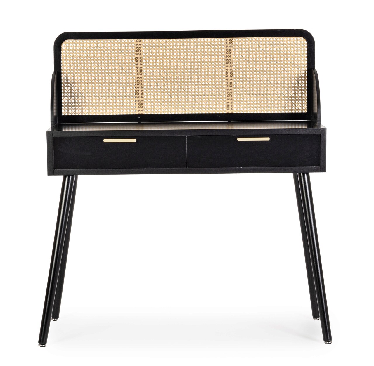 Consola Josine, Bizzotto, 100 x 40 x H78+35 cm, MDF/ratan/lemn de pin, negru