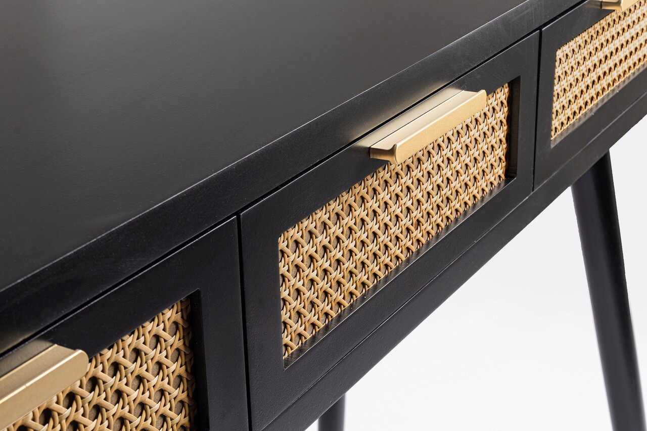 Consola Josine, Bizzotto, 110 x 40 x 78 cm, MDF/ratan/lemn de pin, negru