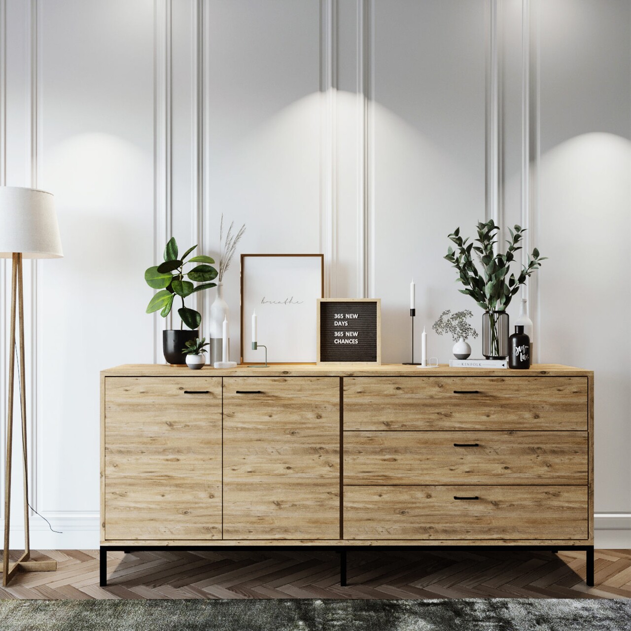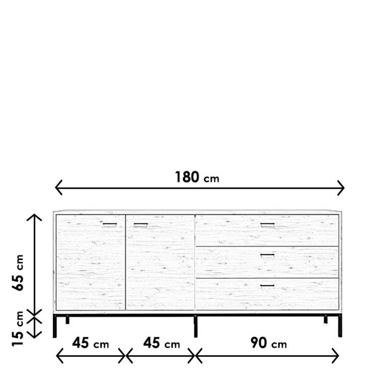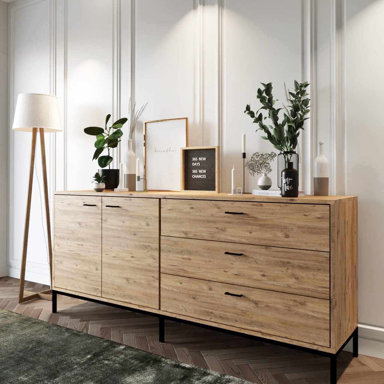 Consola, Lacivert, Riga, 180 x 80 x 45 cm, pal melaminat, stejar/negru